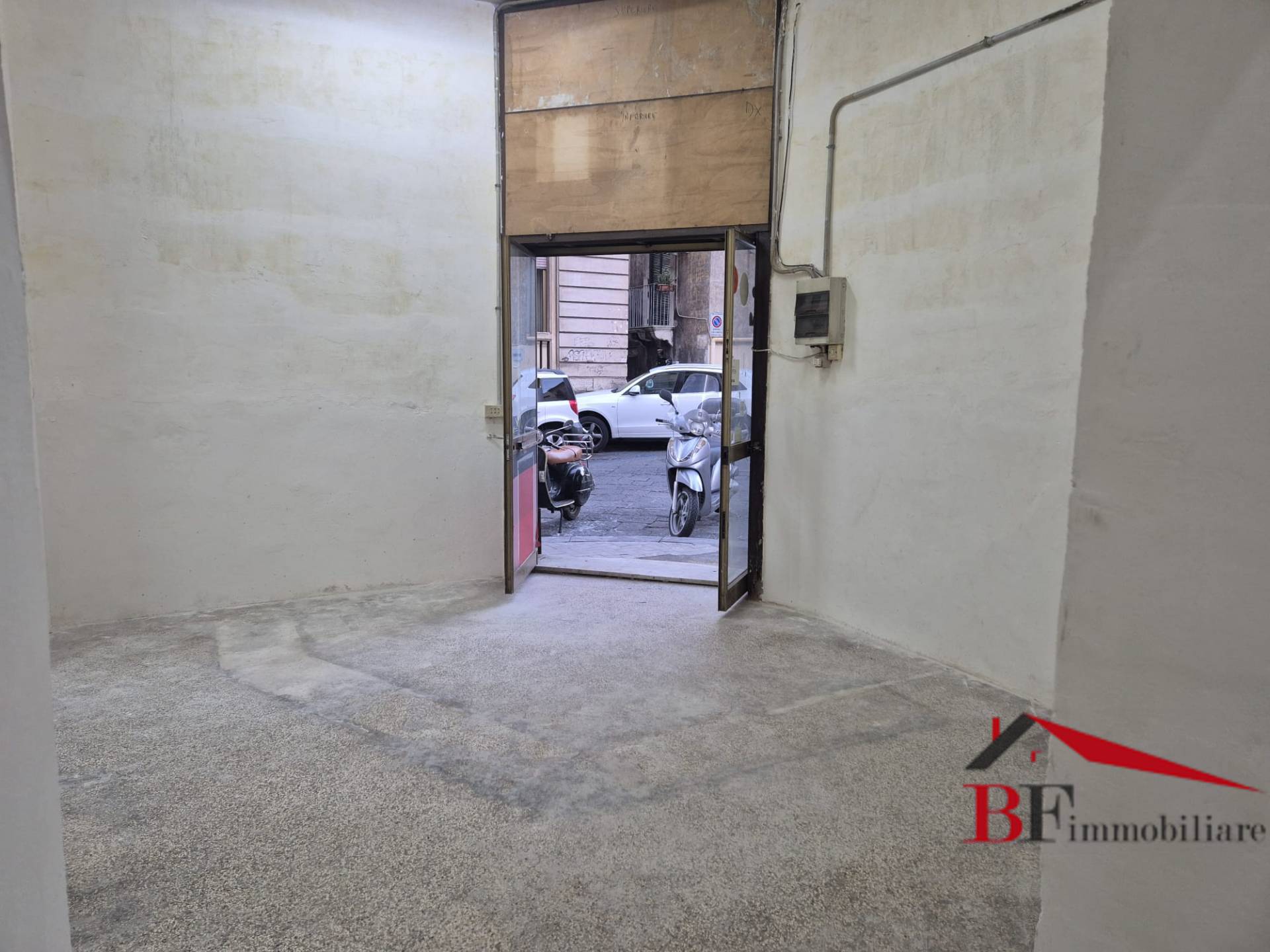 La bottega, in discrete condizioni e con tre luci su strada di cui due su via Costanzo e una sulla via Caronda, si compone di ingresso sul locale vendita, vano deposito in ammezzato, e bagno.