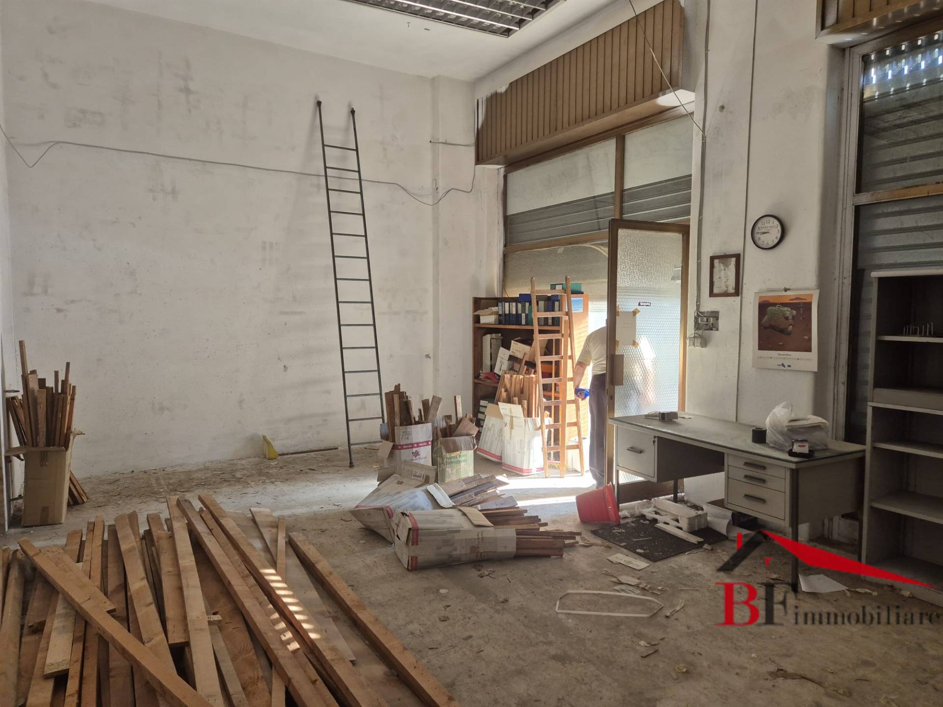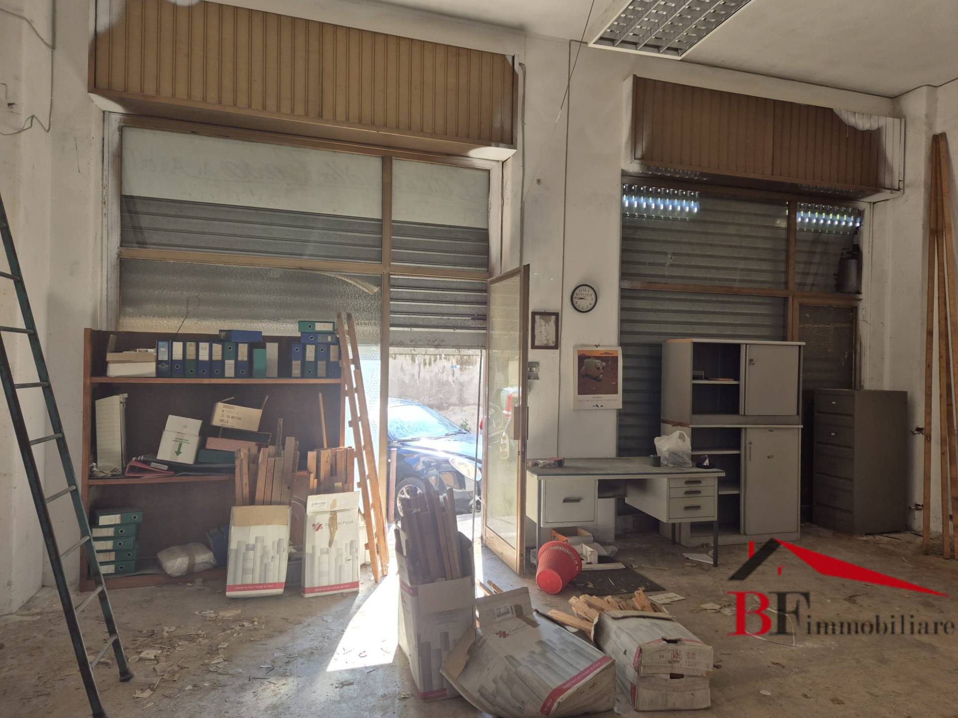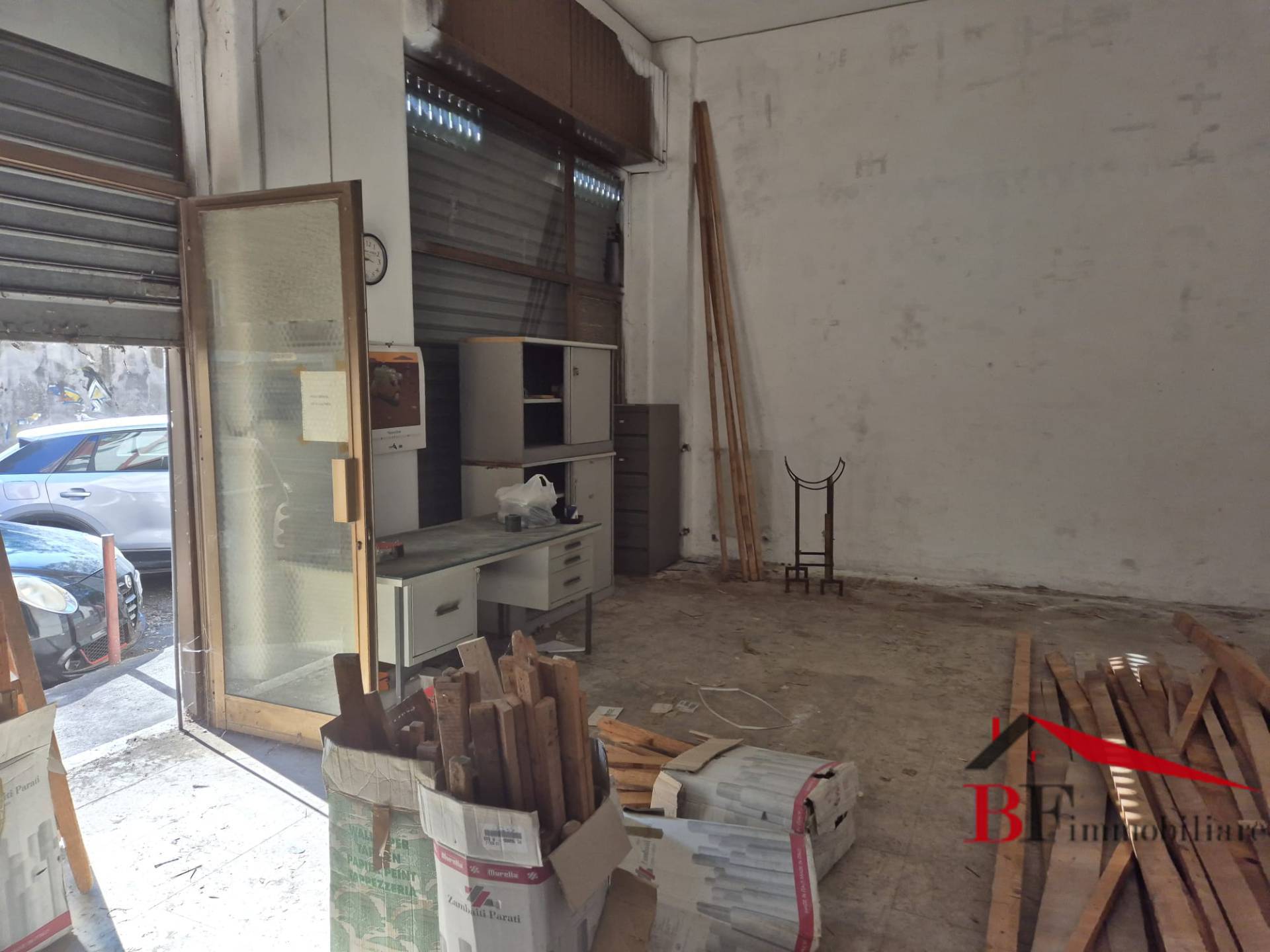 La bottega composta da un unico ambiente, bagno e ampio deposito al piano sottostante con accesso da una scala interna.