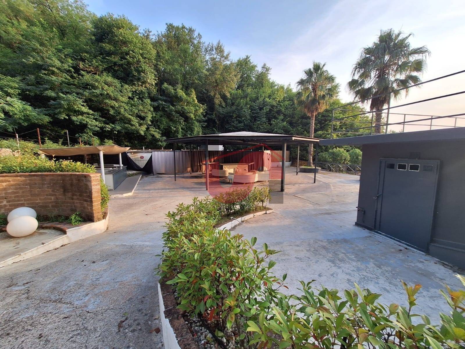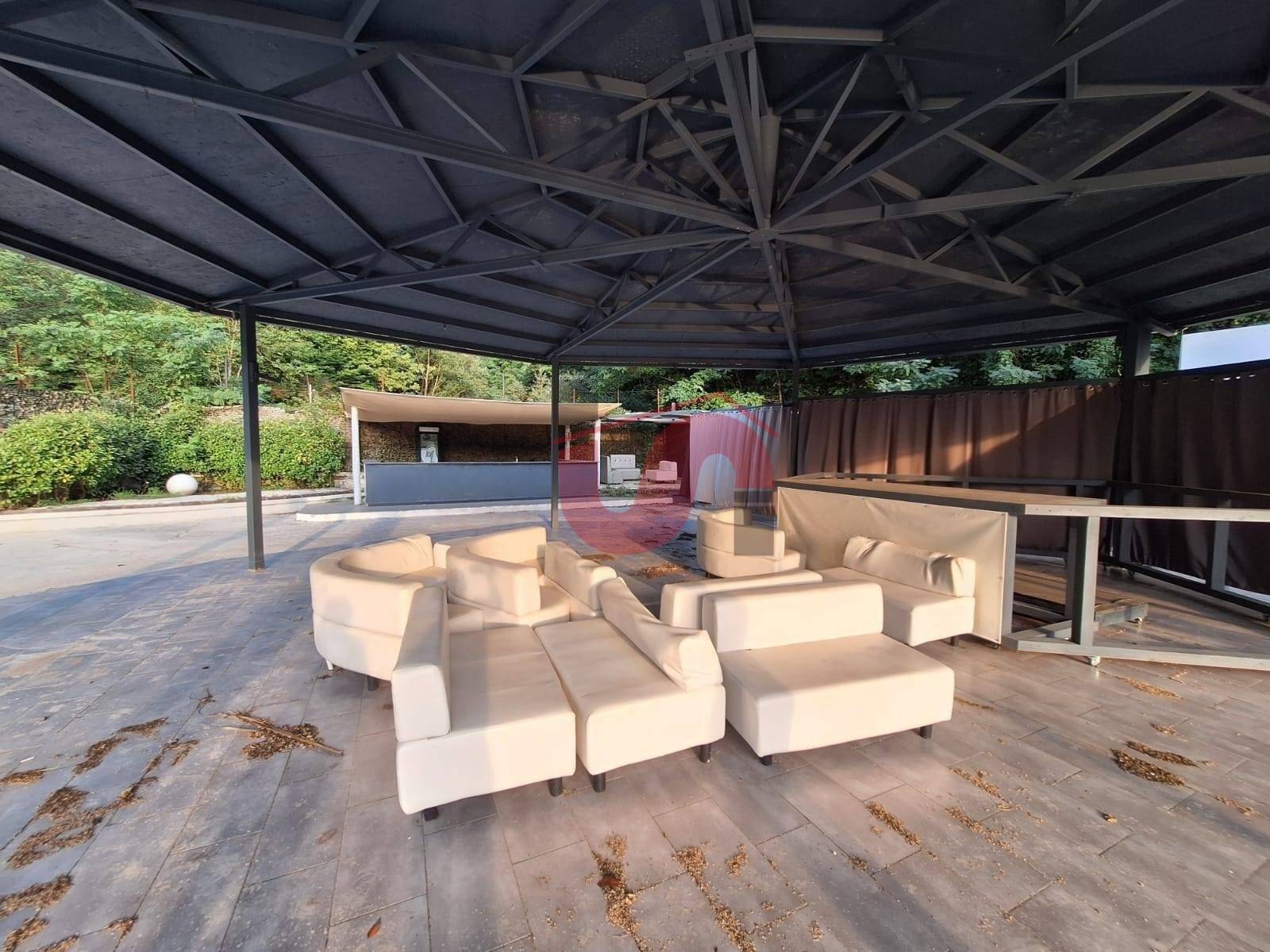 In posizione sopraelevata rispetto all'accesso e raggiungibile tramite un suggestivo viale, si sviluppa una area scoperta dotata in parte di tettoia in legno ottima per eventi, serate di ogni tipo e momenti di aggregazione.