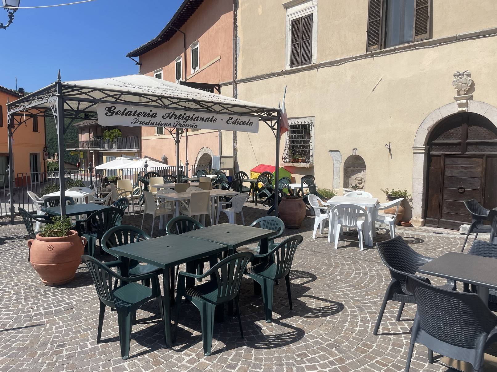 Cerreto di Spoleto, nella centralissima Piazza Pontano proponiamo in vendita locale commerciale con all'interno attivit di bar, gelateria, edicola e vendita articoli da regalo e giochi.