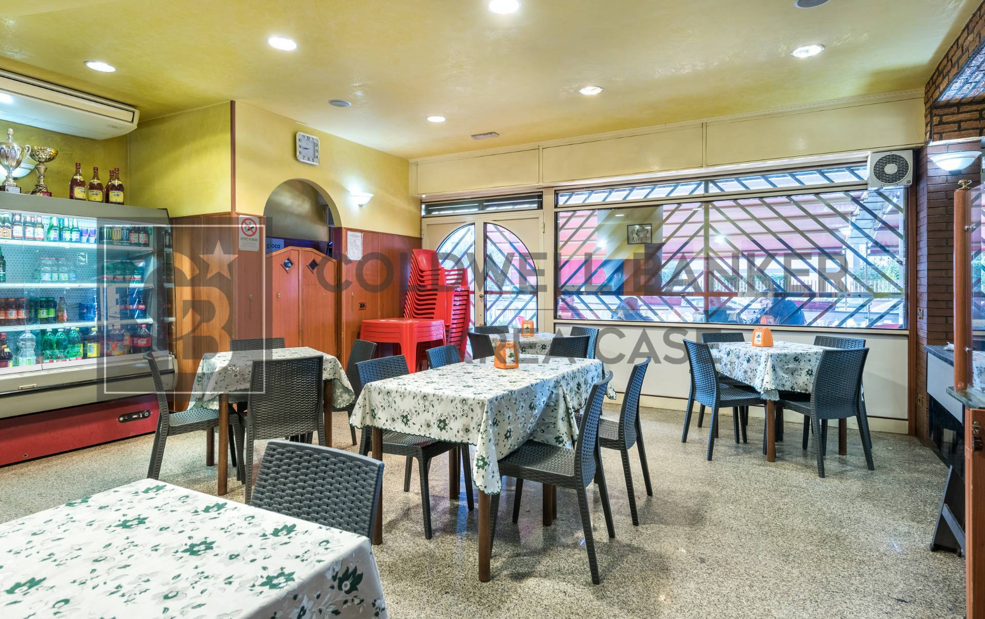 Il locale composto da una zona vendita, una cucina separata con canna fumaria, un magazzino e da un bagno con antibagno.