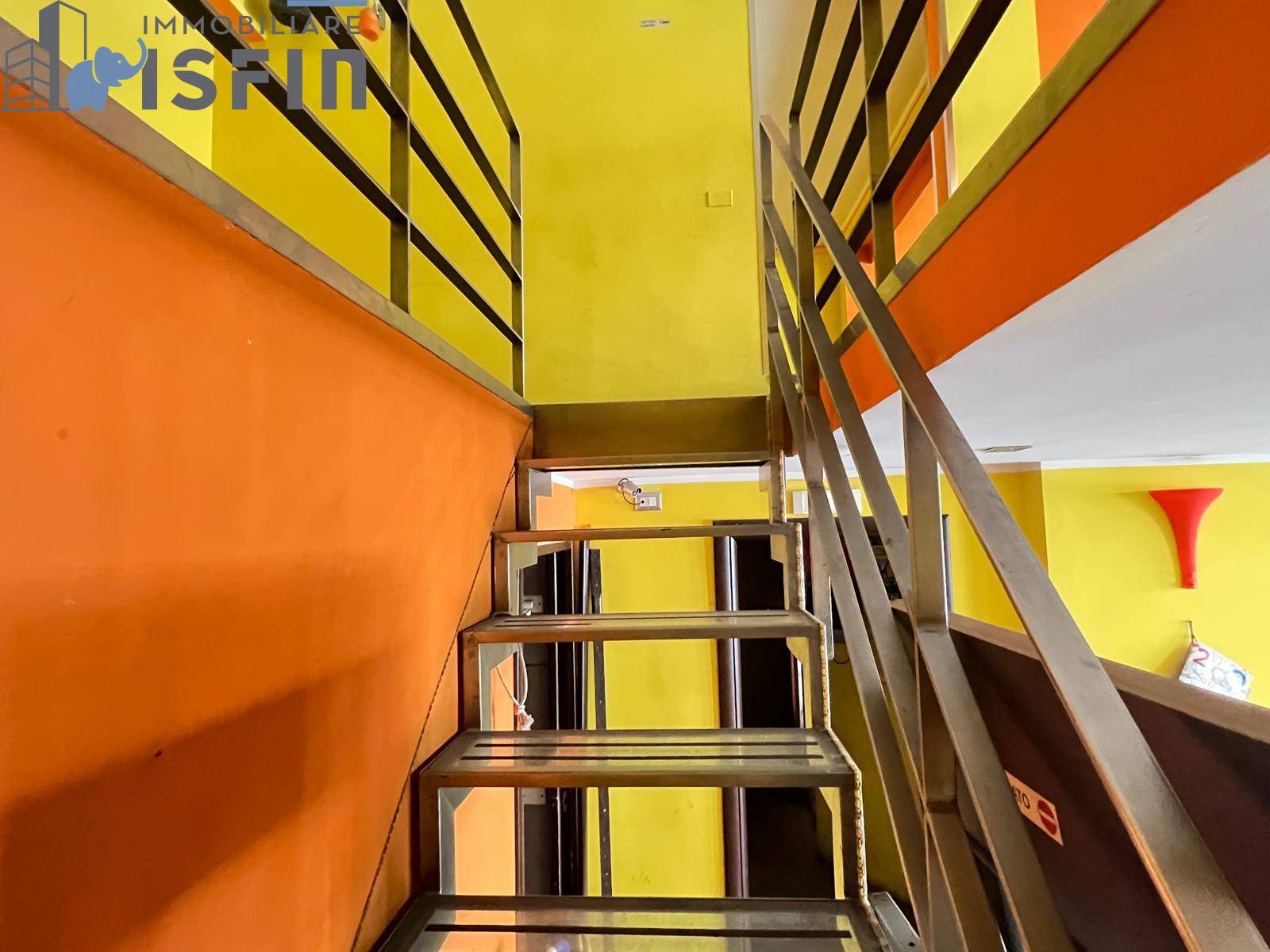 Il locale composto da due vetrine fronte piazza pi due infissi alti con apertura a vasistas al primo piano, vano open space per la vendita, deposito e bagno oltre ad area deposito soppalcata.