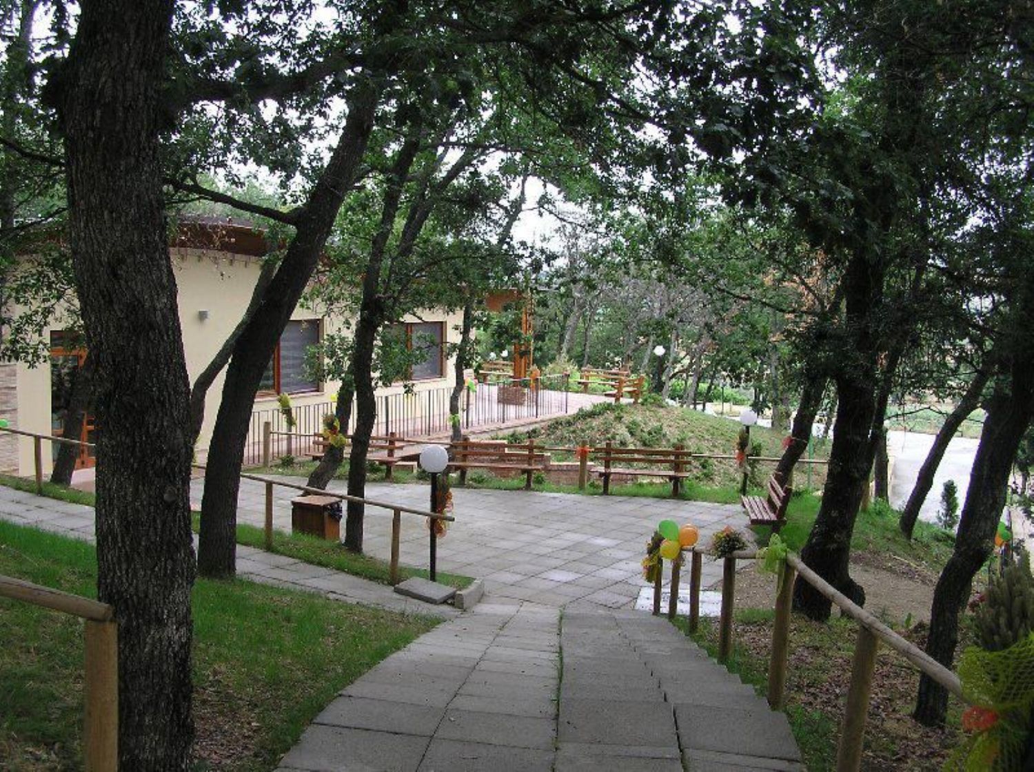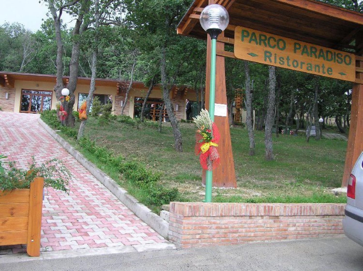 Il locale di 200 posti a sedere con ampia cucina attrezzata, servizi e veranda di mq 100 a piano terra, ha altro locale accessorio con bagni, magazzino, al seminterrato oltre a zona braceria con piattaforma, all'esterno in contesto di 2 ettari di terreno.