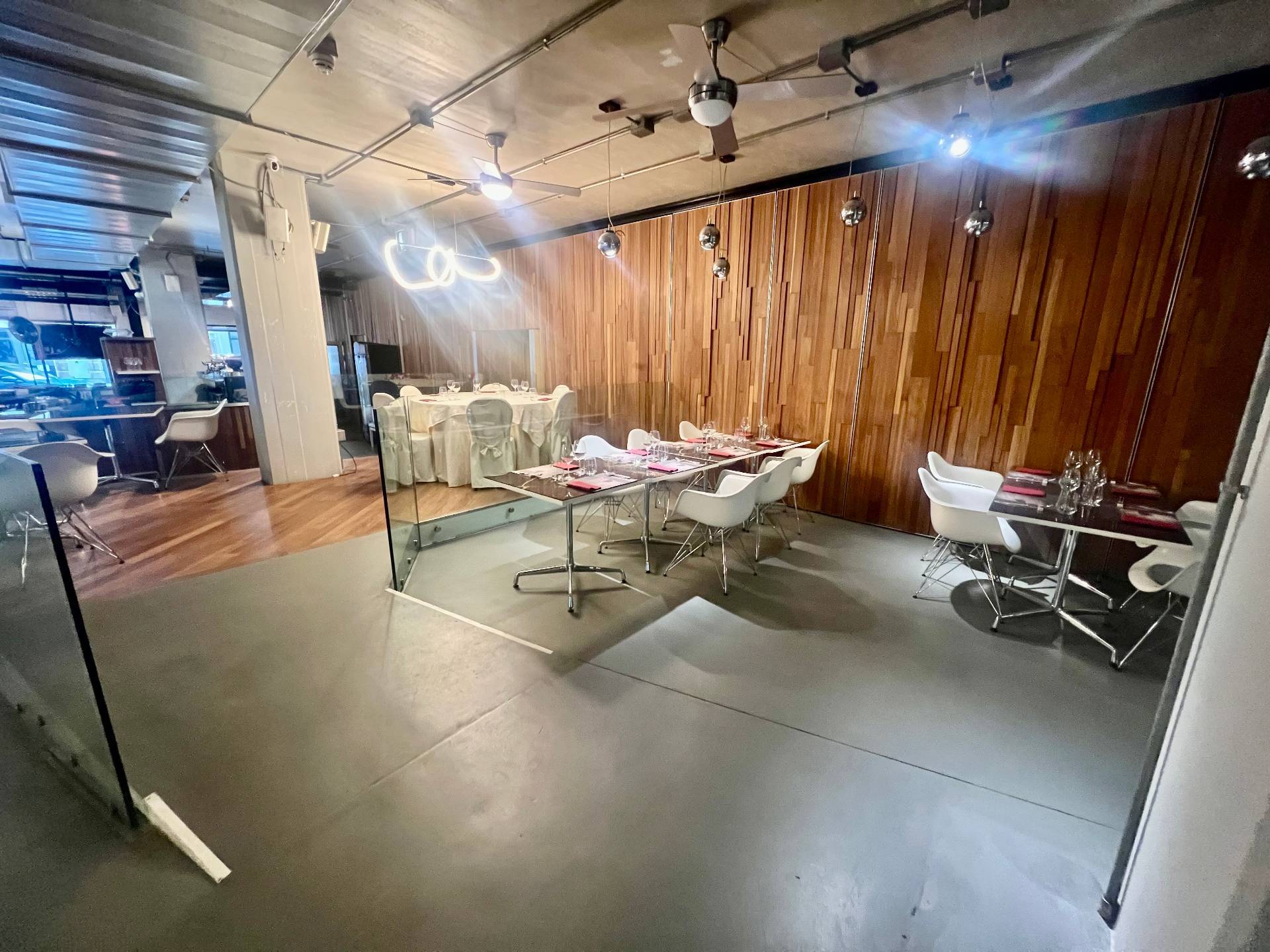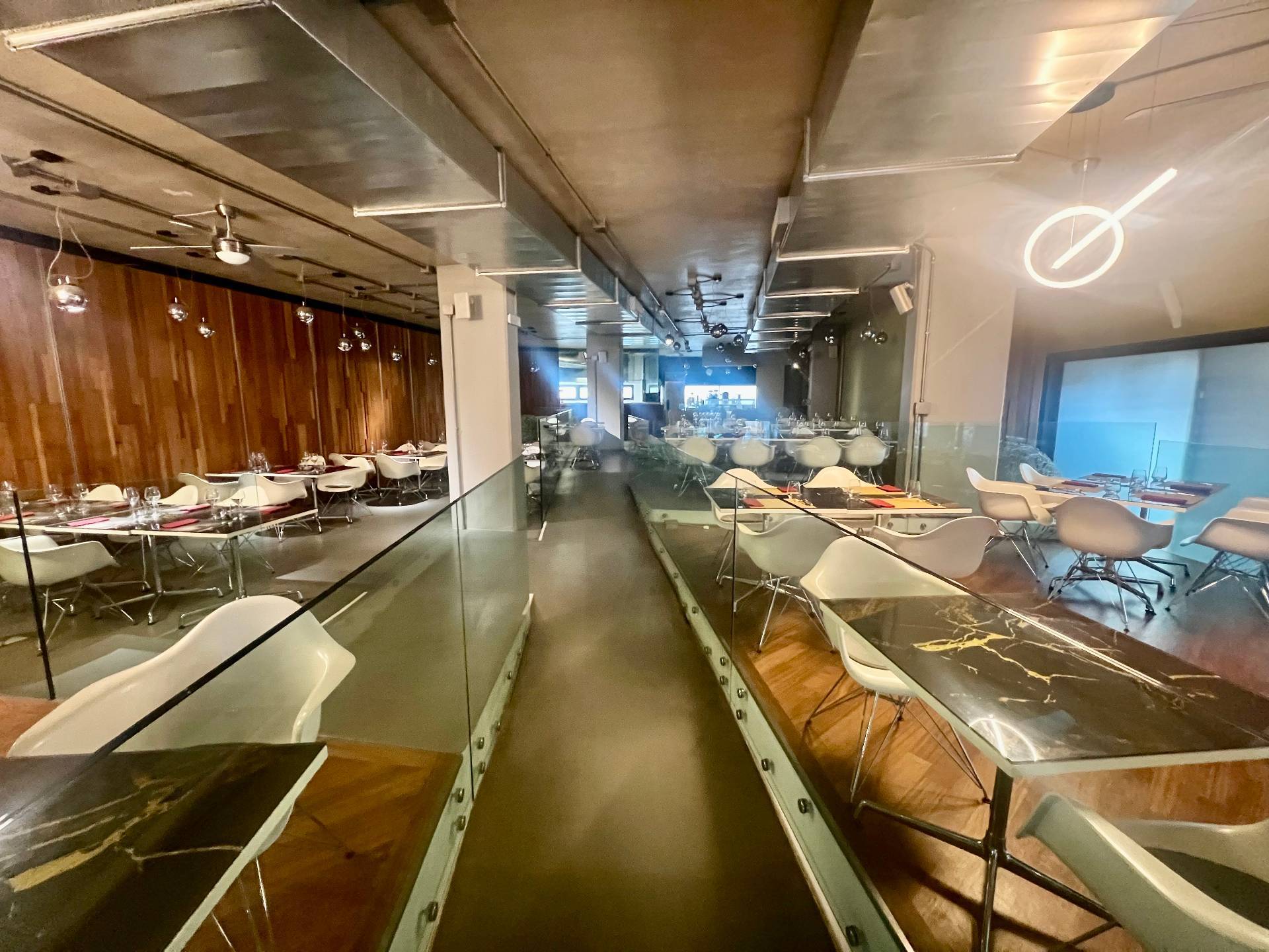 Lampia metratura di mq. 370 circa oltre alla veranda esterna, distribuita in modo funzionale e valorizzata da una cucina a vista, un vero e proprio palcoscenico per chef e brigata, perfetta per show cooking e concept gastronomici innovativi.