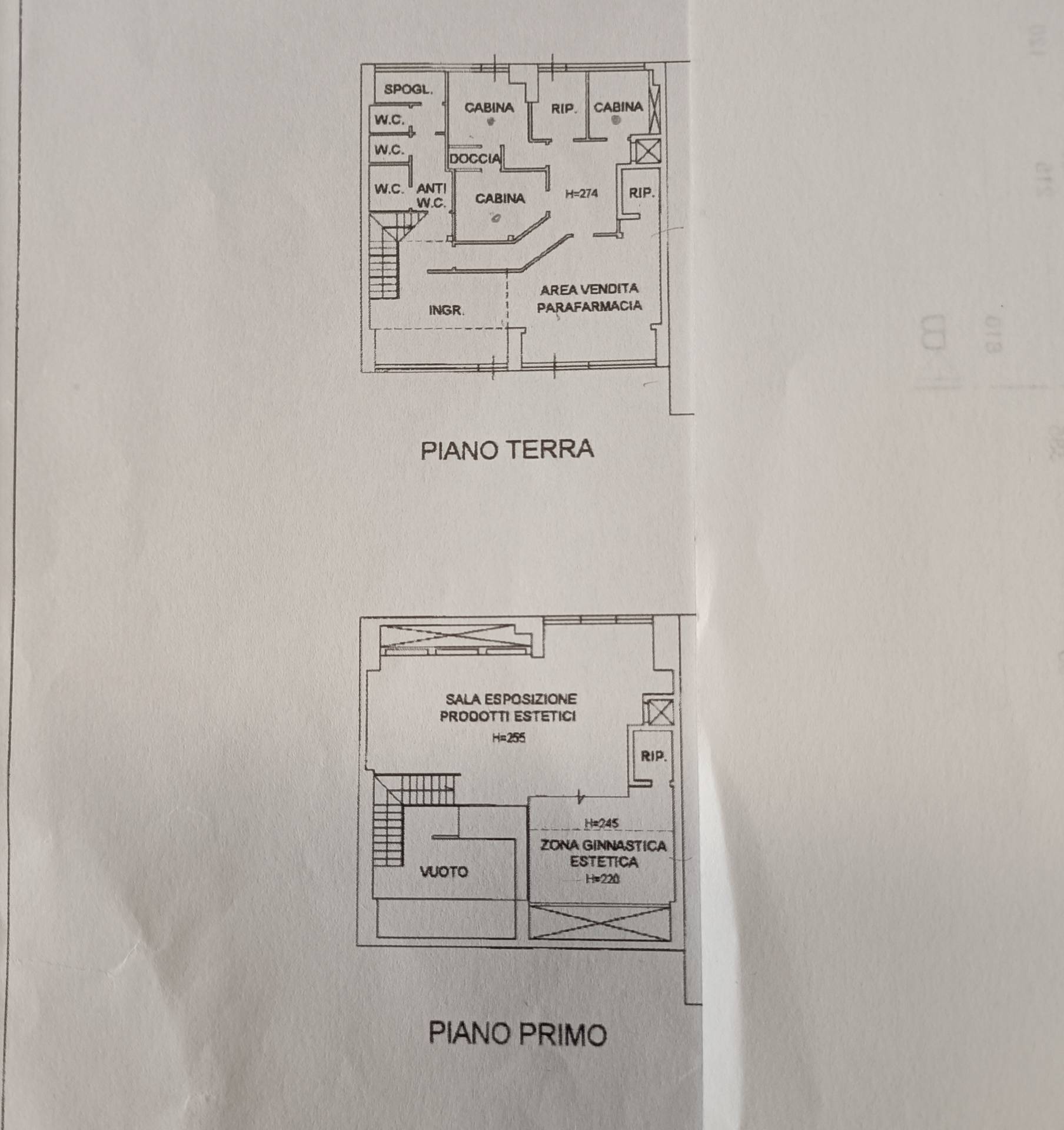 L'ingresso si apre su un ampio e luminoso locale principale, dotato di 2 grandi vetrine che garantiscono un'ottima visibilit e una buona luminosit interna, comodo disimpegno, 3 cabine di cui 2 con doccia, 2 ripostigli, antibagno, 3 wc e spogliatoio al piano rialzato; 3 locali e ripostiglio al 1°piano.
