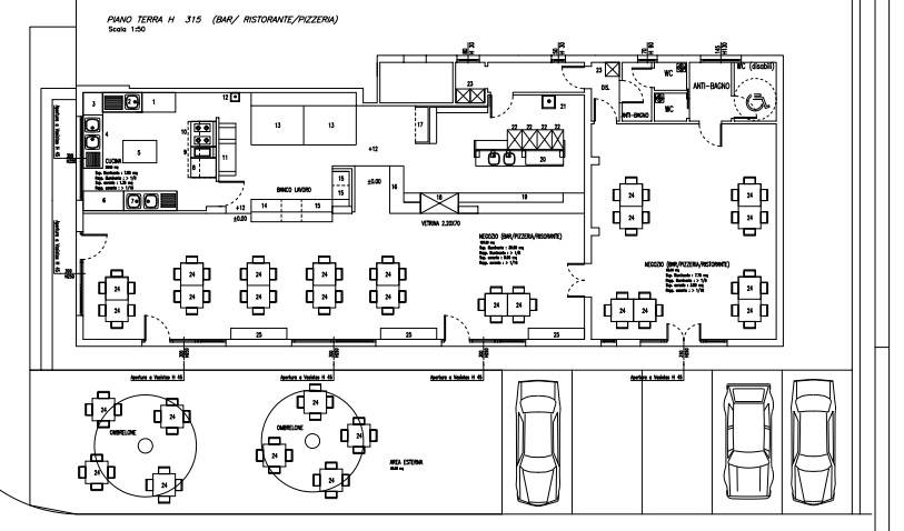 Comfort Esterno: La propriet vanta un ampio patio e un dehor esterno, elementi fondamentali oggi per il successo di qualsiasi attivit di somministrazione, che aumentano il valore dellimmobile nel tempo.