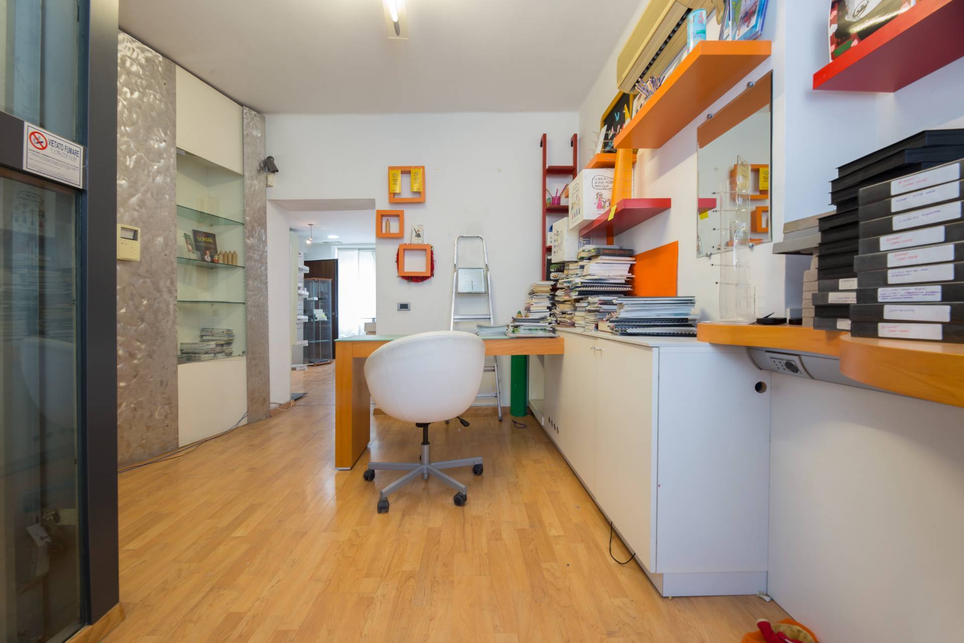 Vendiamo muri negozio (cat. C/1) collegato anche internamente, attraverso ascensore privato, con due appartamenti attualmente cat A/10 (ufficio) di metratura di circa 90 mq ciascuno.