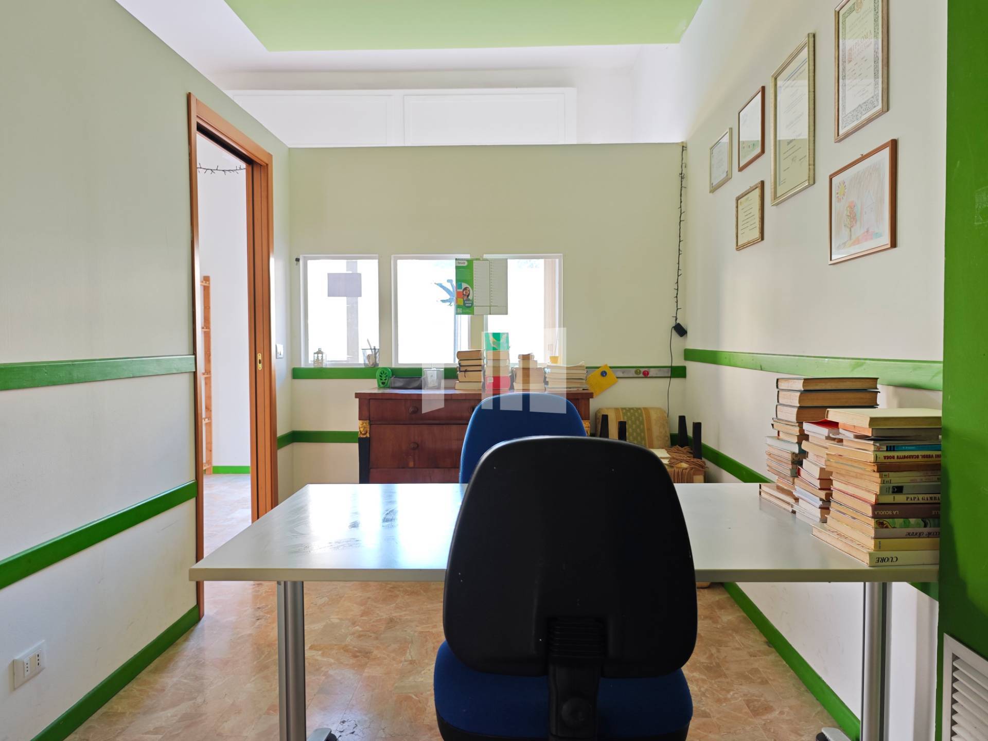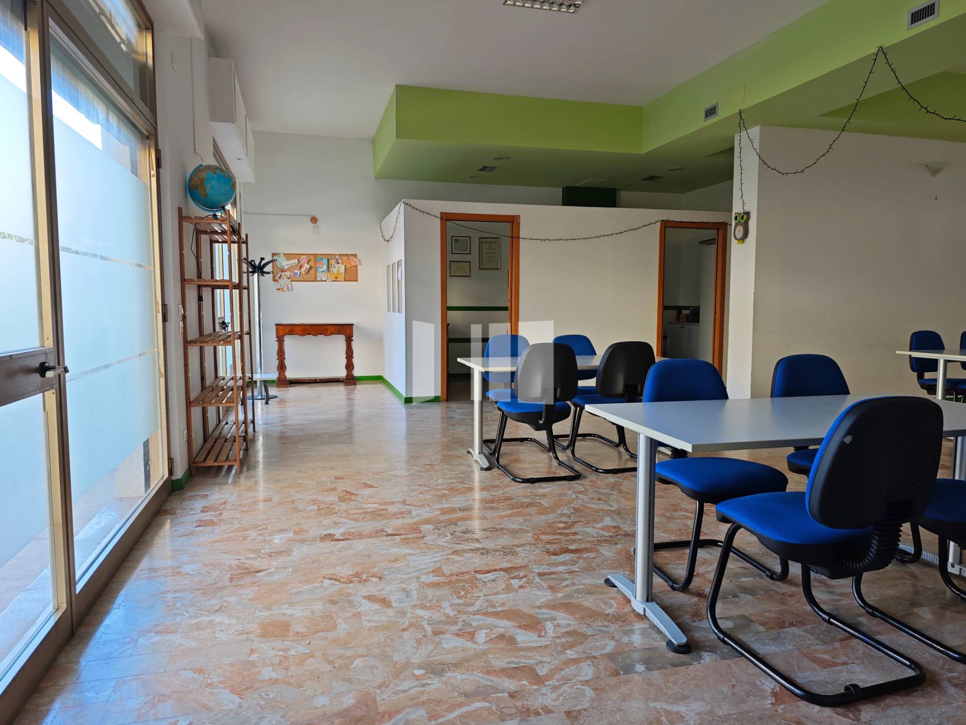 4. Categoria commerciale C/1. INTERNO: La soluzione si sviluppa con un ingresso su strada, sullampia zona accoglienza; da questo punto possibile accedere alla stanza ristoro dov' presente un lavello con piano di appoggio, alla zona dellantibagno e al bagno con finestra.