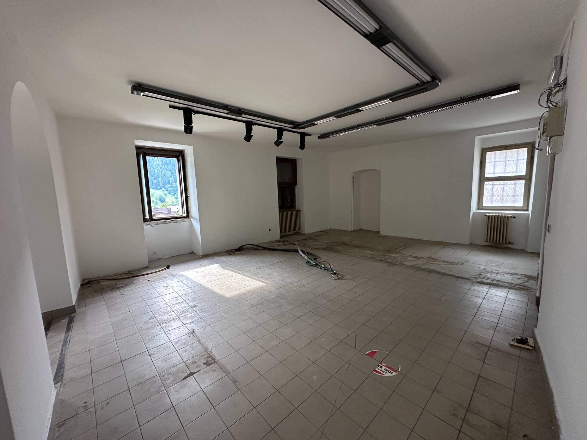 Nella piazza centrale di Giustino ampio locale ad uso commerciale o con cambio di destinazione d'uso in appartamenti.