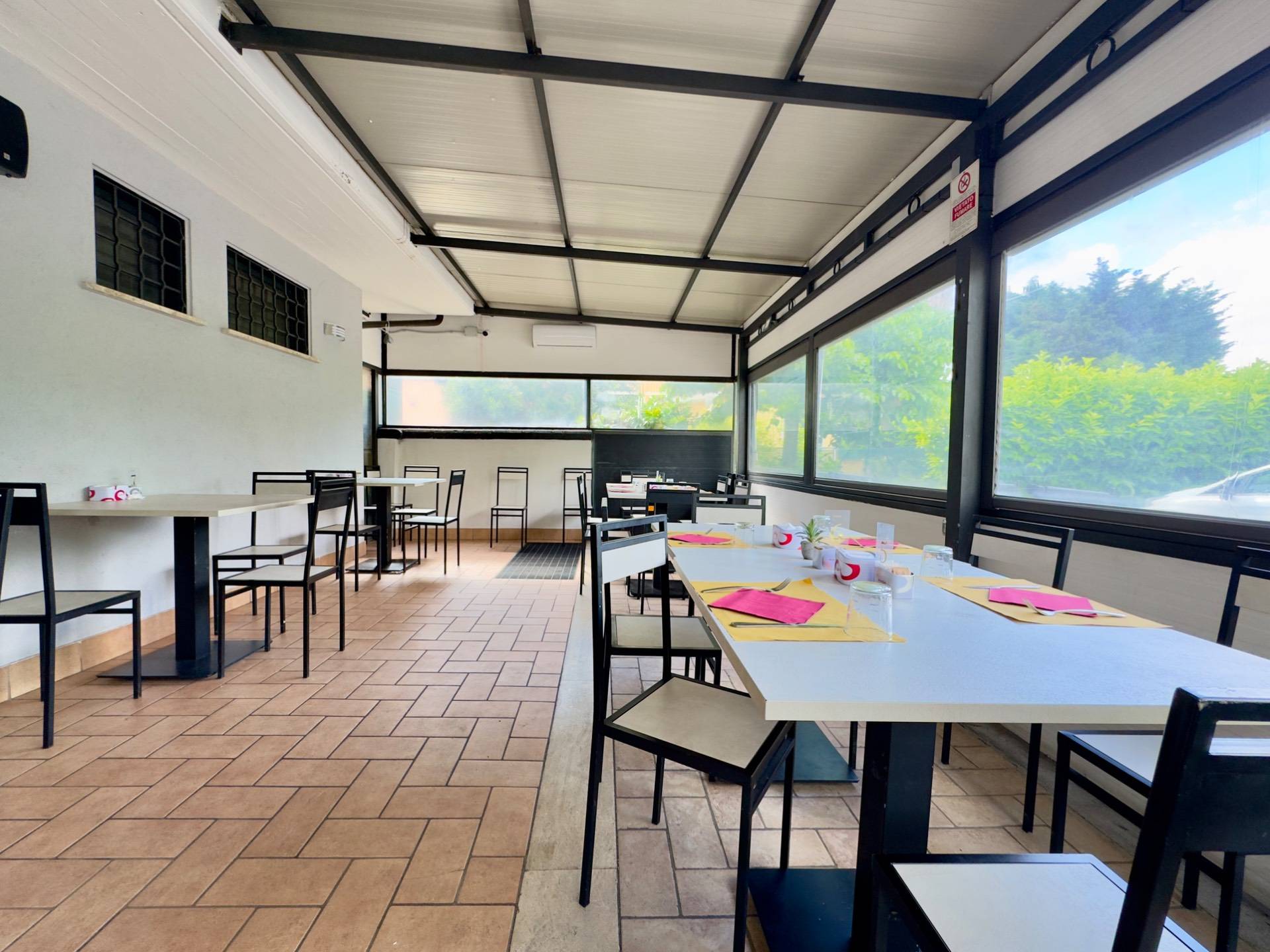 Internamente composto da un' ampia sala, una cucina, doppi servizi (uno per la clientela con antibagno e l'altro per il personale) e una veranda di 40 mq, mentre all'esterno a servizio del locale troviamo un ampio parcheggio di circa 400 mq. A completare la propriet troviamo al piano seminterrato un garage di 60 mq molto spazioso.