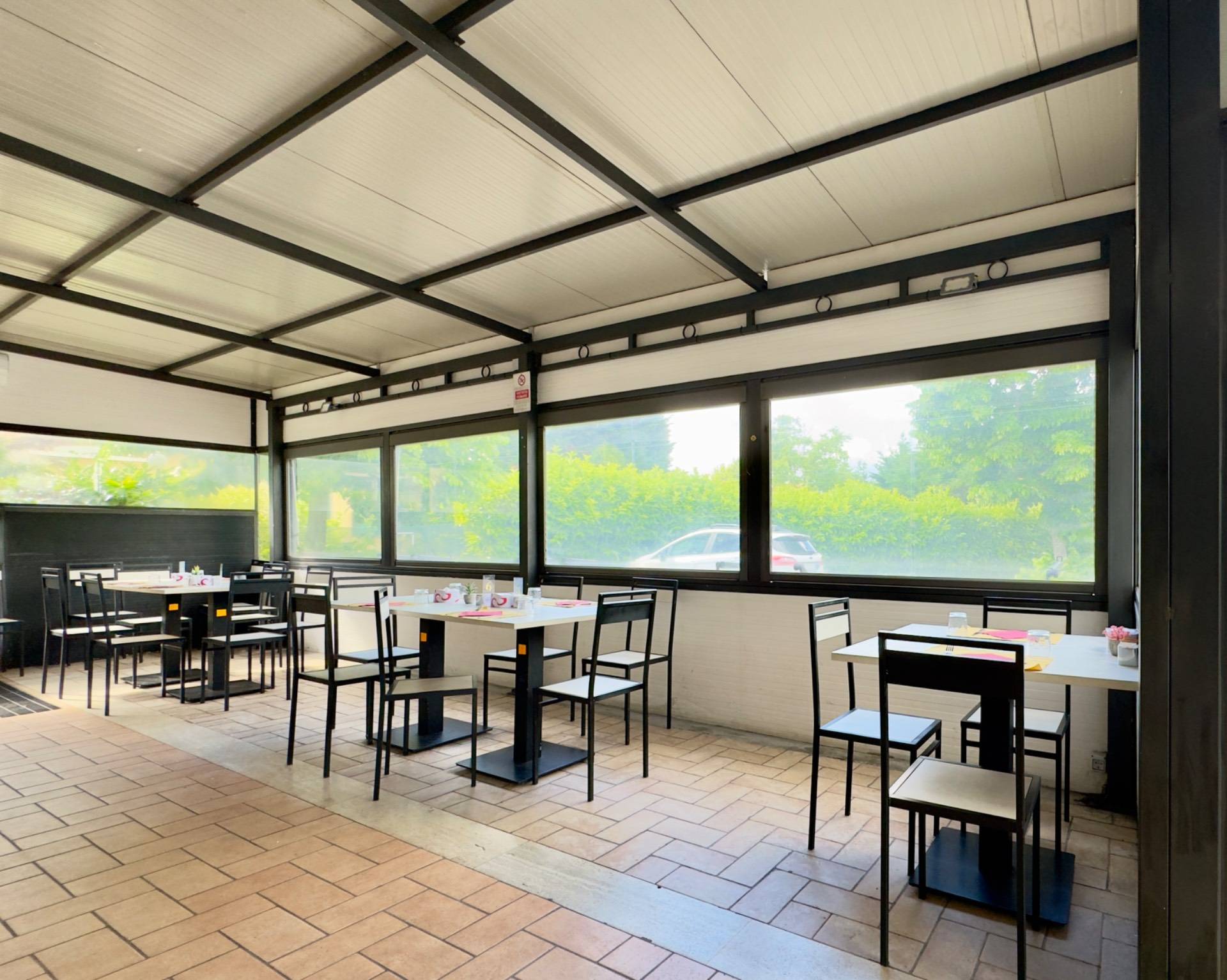 Internamente composto da un' ampia sala, una cucina, doppi servizi (uno per la clientela con antibagno e l'altro per il personale) e una veranda di 40 mq, mentre all'esterno a servizio del locale troviamo un ampio parcheggio di circa 400 mq. A completare la propriet troviamo al piano seminterrato un garage di 60 mq molto spazioso.