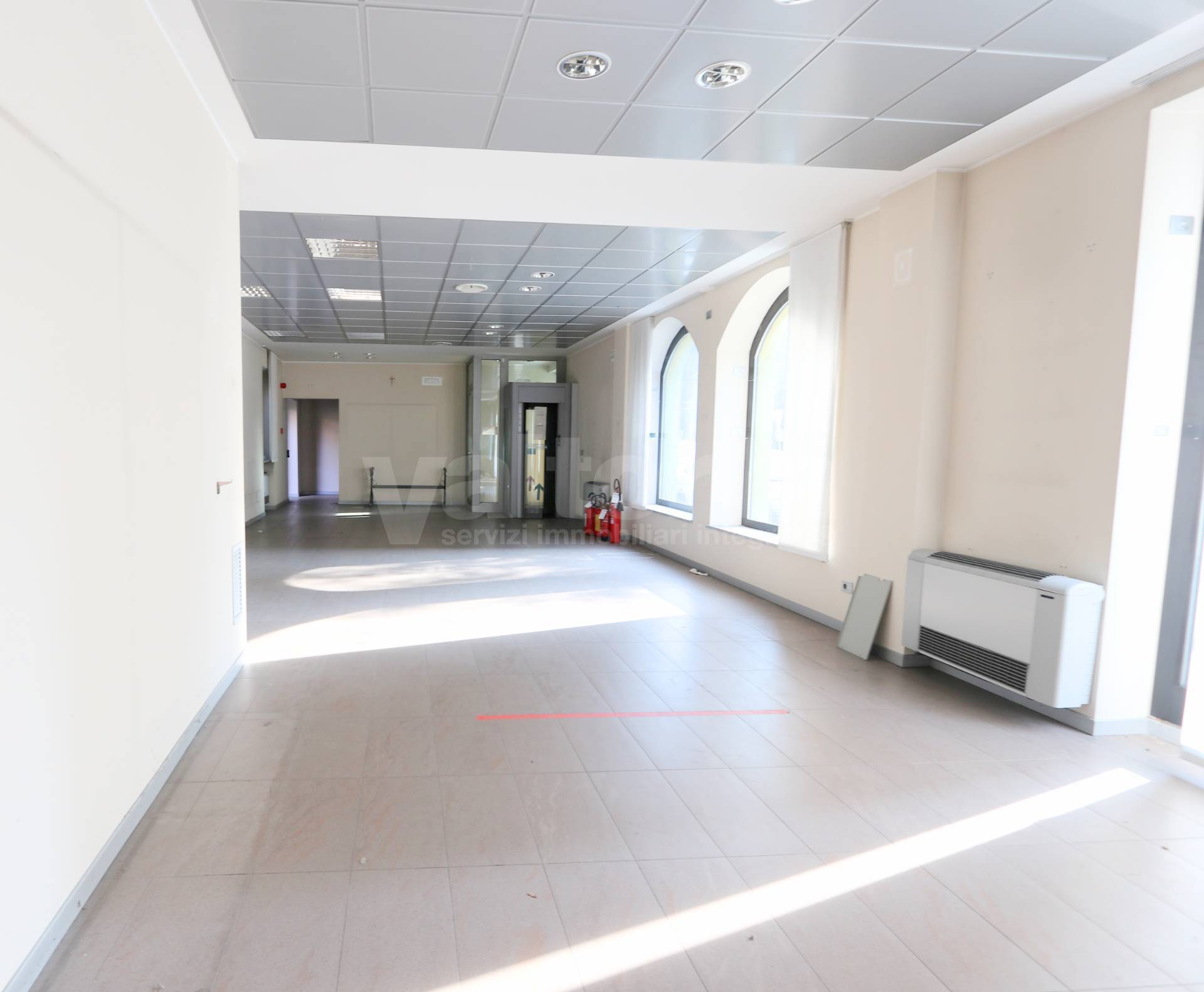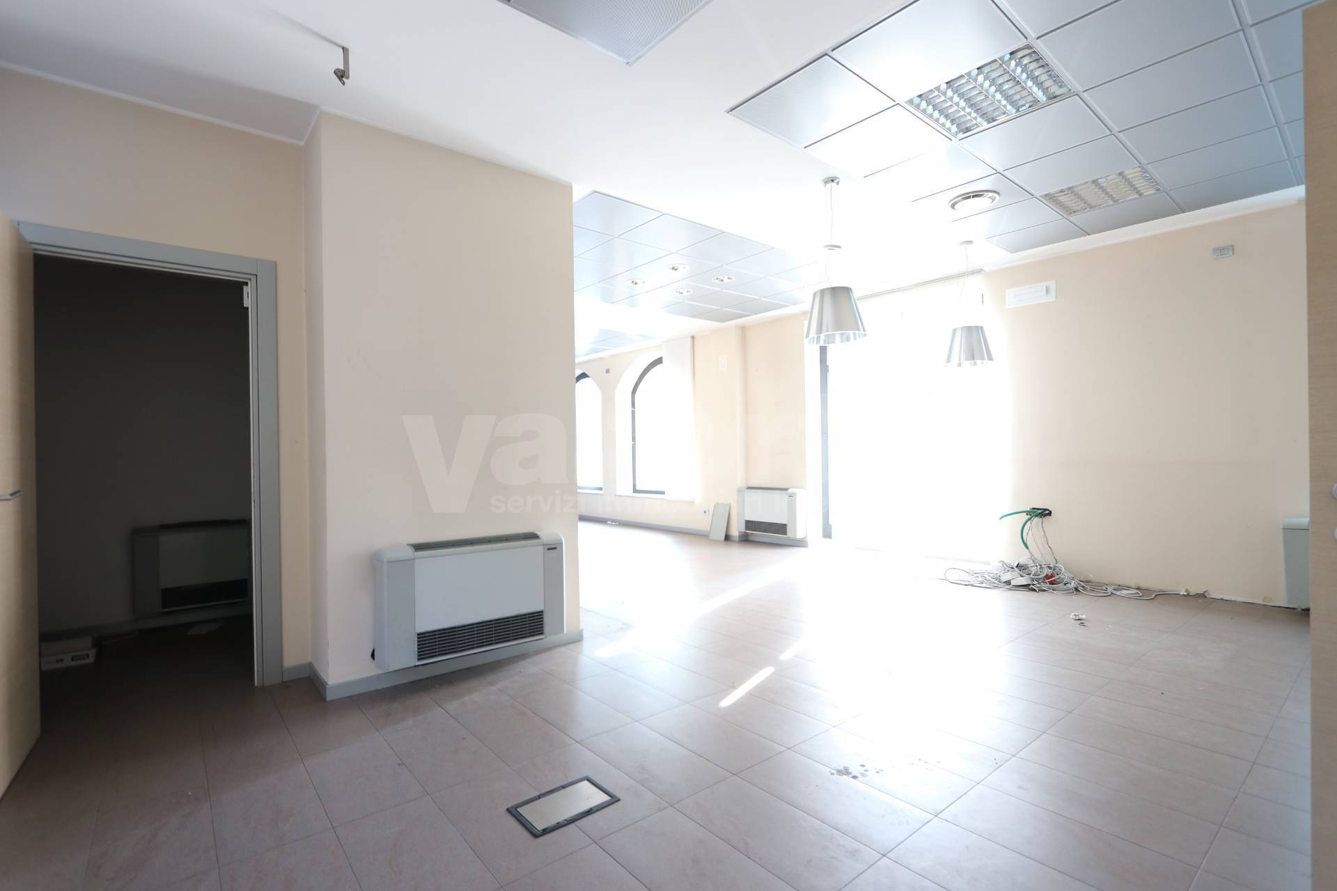 Al piano terra troviamo un ampio open space con doppio ingresso, 4 vetrine su strada, bagno disabili, locale pulizie, locale tecnico ed altro locale, collegato col piano 1° da una scala interna con montascale; al piano 1° tre ambienti e doppi servizi.