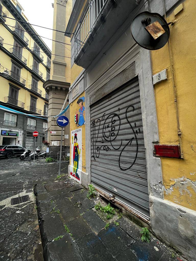 I locali, posti luno di fianco allaltro, dispongono di tre ingressi di cui uno in via Rua Catalana e si sviluppano su un unico livello con unaltezza di circa 4 metri.