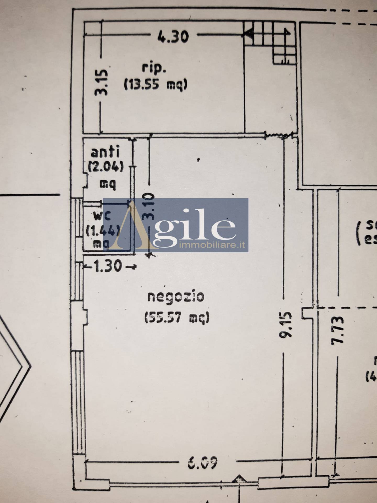 RIF: C2 Il locale commerciale, posto a piano strada, presenta le dimensioni di 55 mq circa, oltre ad comodo ripostiglio di circa 14 mq, bagno e antibagno.