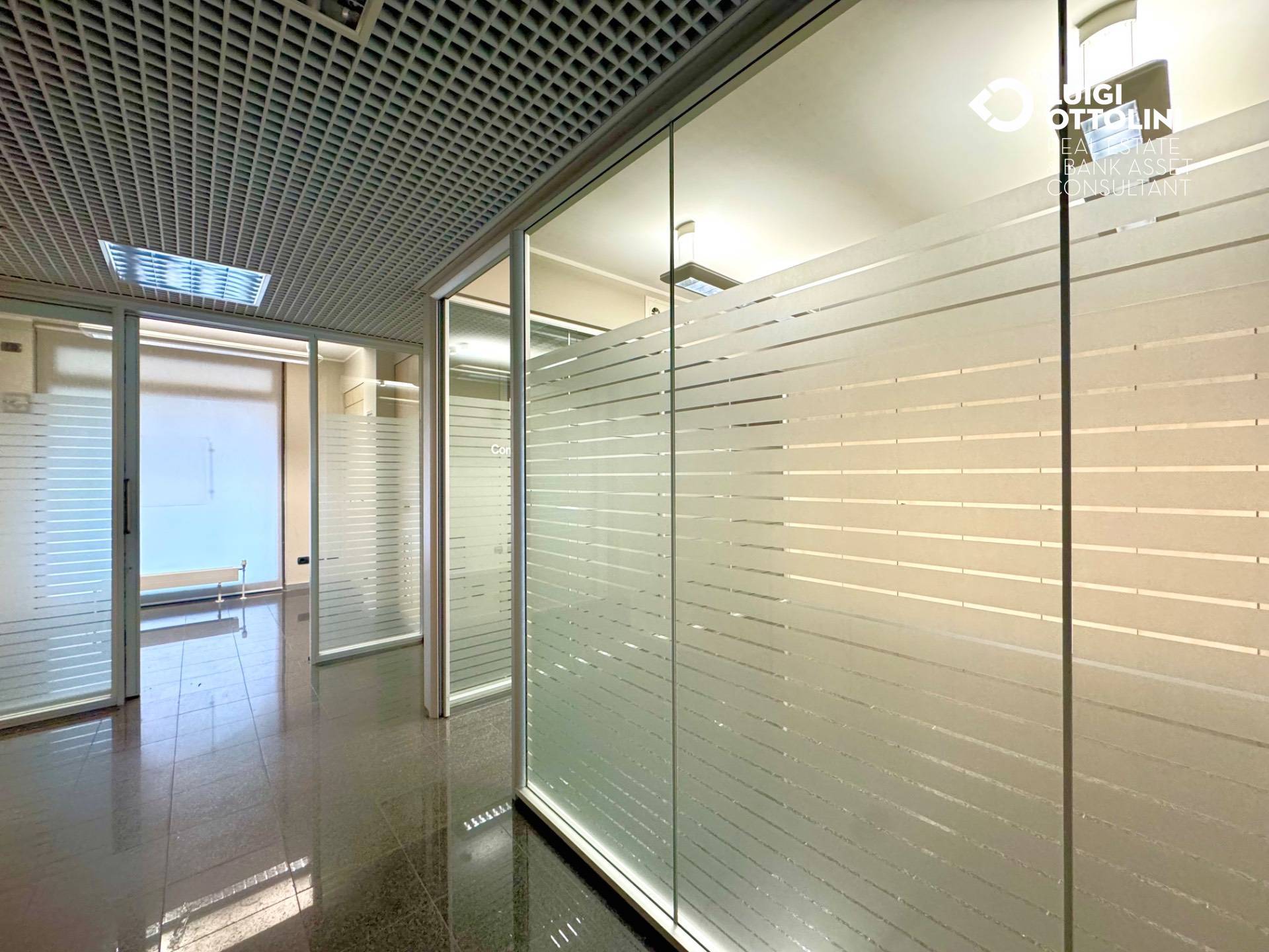 Le stanze sono separate da pannelli in vetro ed armadi divisori per garantire la massima privacy ed una maggiore flessibilit nell'utilizzo degli spazi interni.