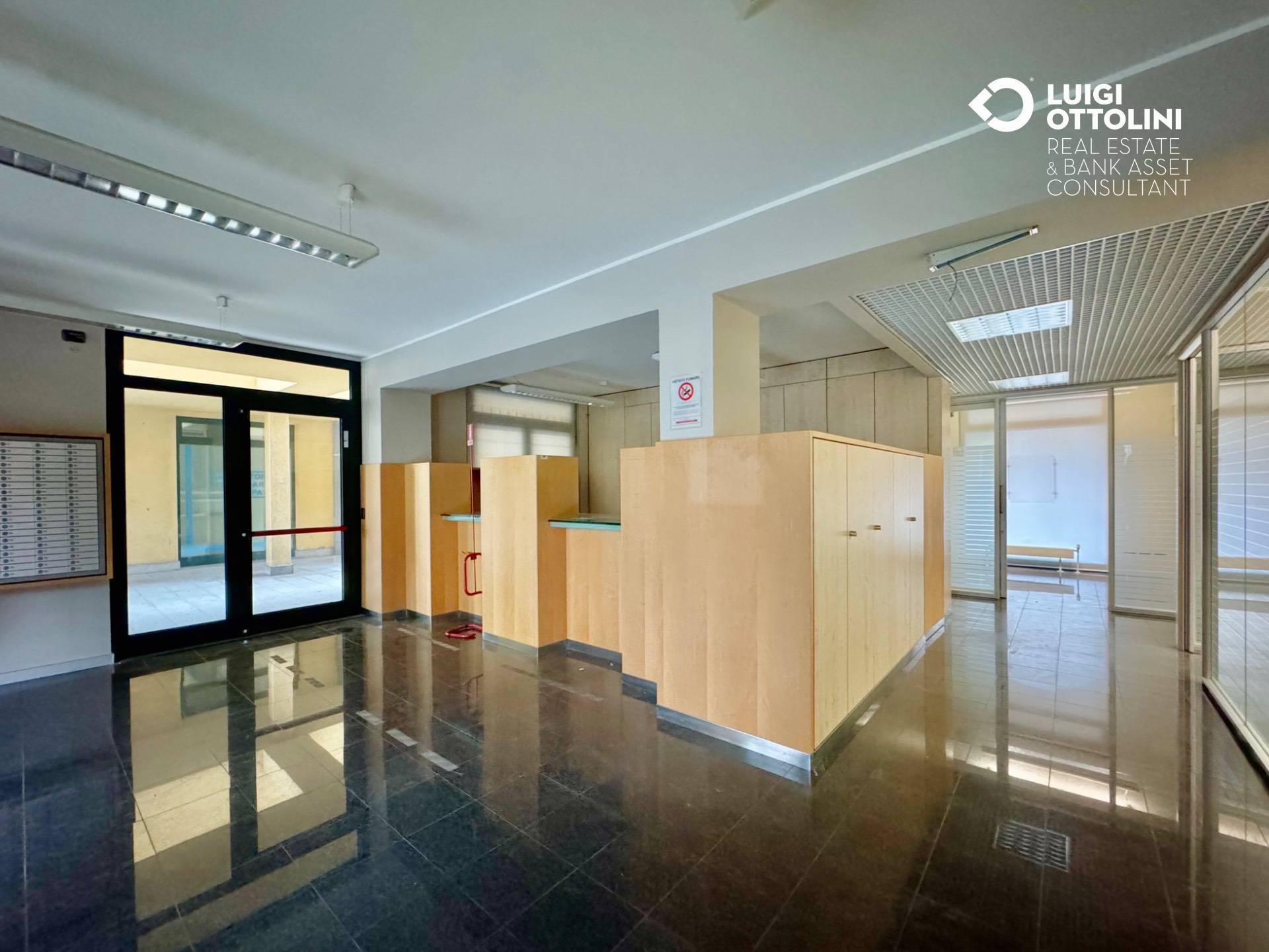 L'immobile si trova al piano terra di una palazzina di 5 piani e gode di un'ottima esposizione grazie alle 16 vetrine (delle quali 5 + ingresso fronte strada) esposte su 4 lati. Attualmente il locale composto da 13 locali e 2 bagni, per un totale di 322 mq di SLP, dei quali 266 al piano terra e 56 al piano seminterrato.