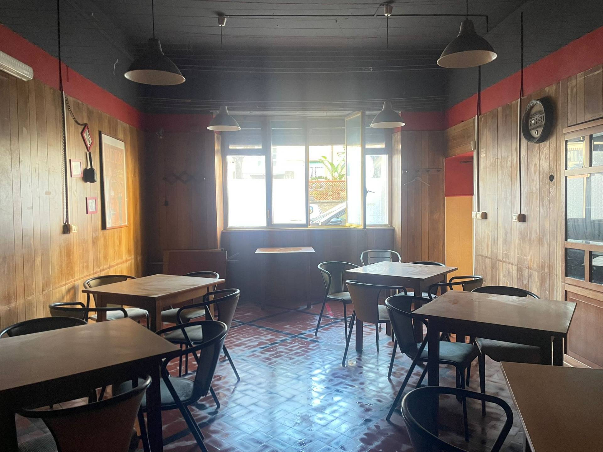La superficie totale di 100 metri quadrati, suddivisi in due ampi locali, di cui una sala bar e una saletta, poi troviamo due bagni con l'antibagno e un ripostiglio nel sottoscala.