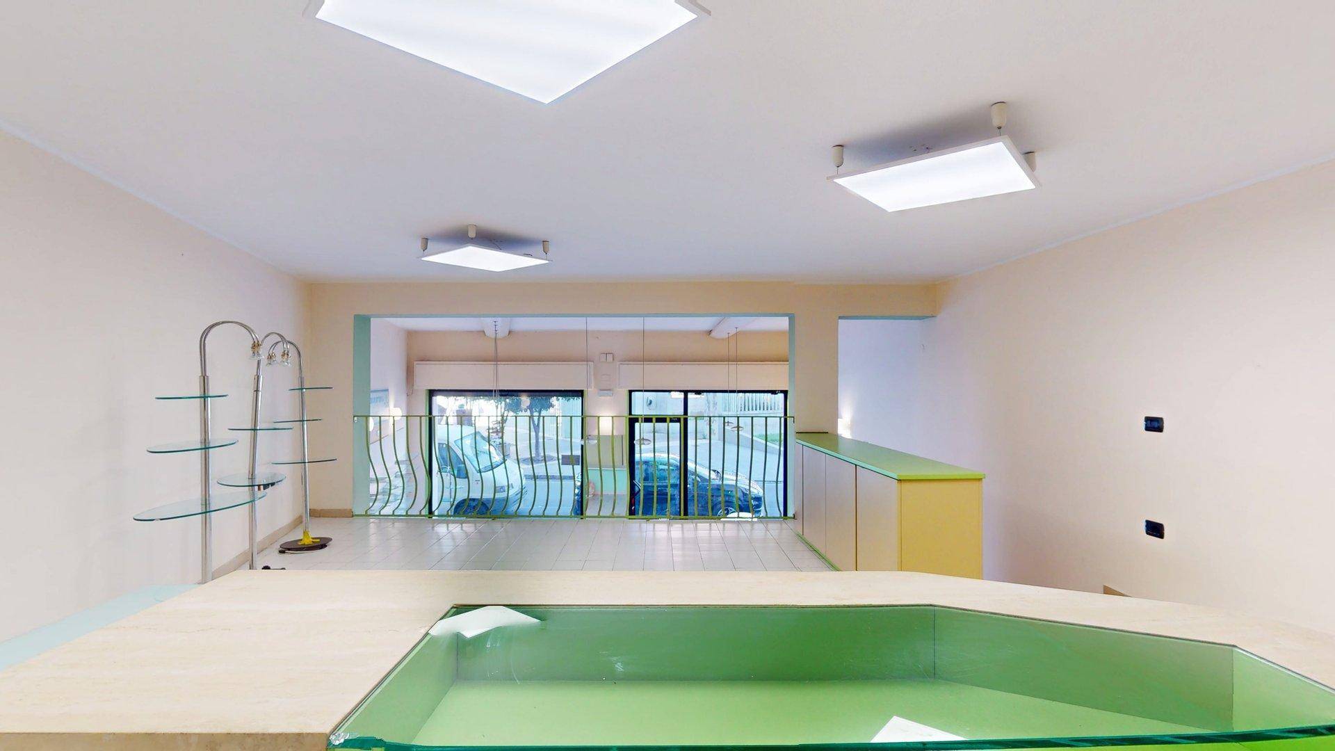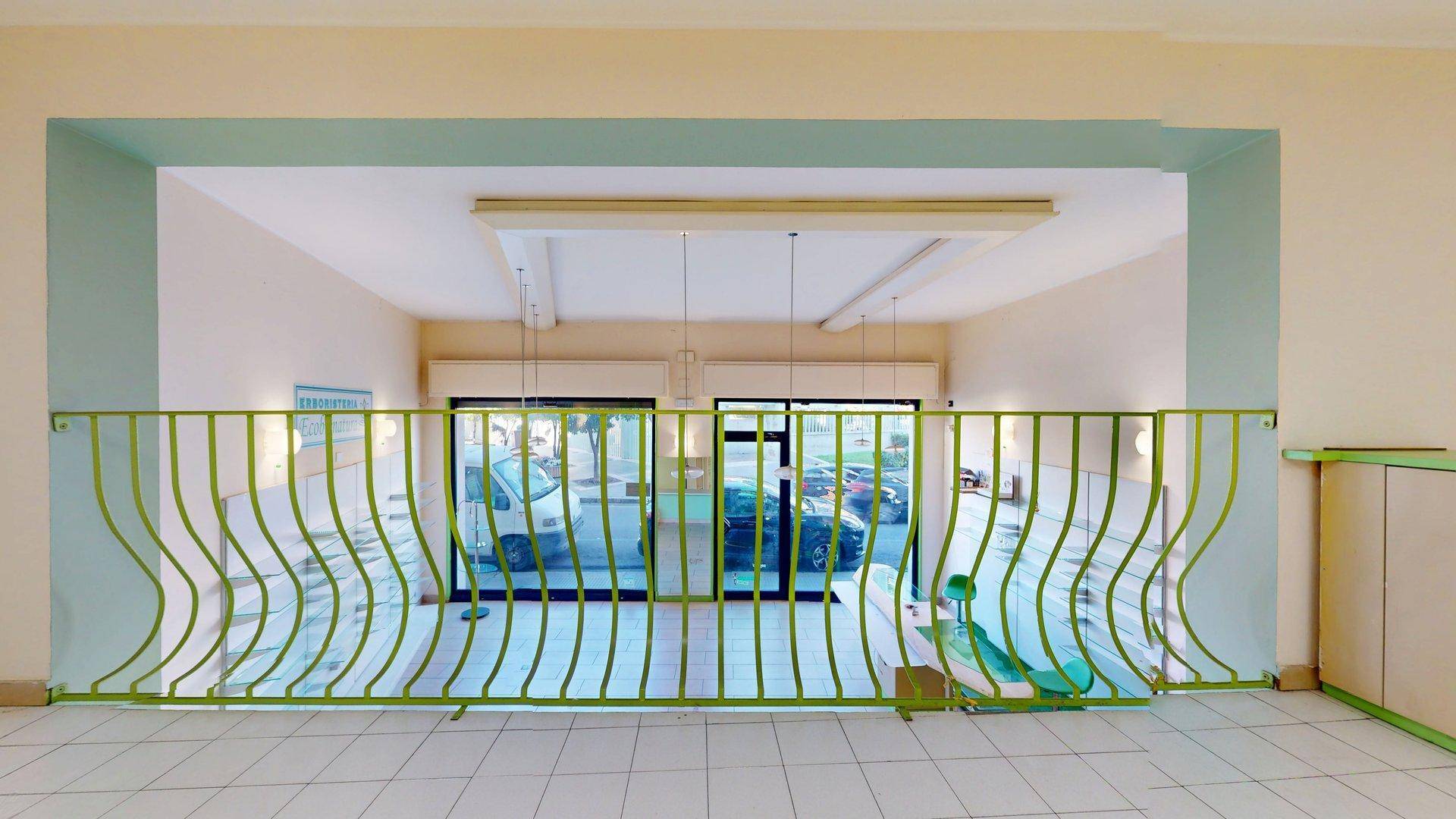 Al piano terra, limmobile accoglie con un ampio ingresso che si apre su una spaziosa sala espositiva, perfetta come reception, area vendita o showroom.