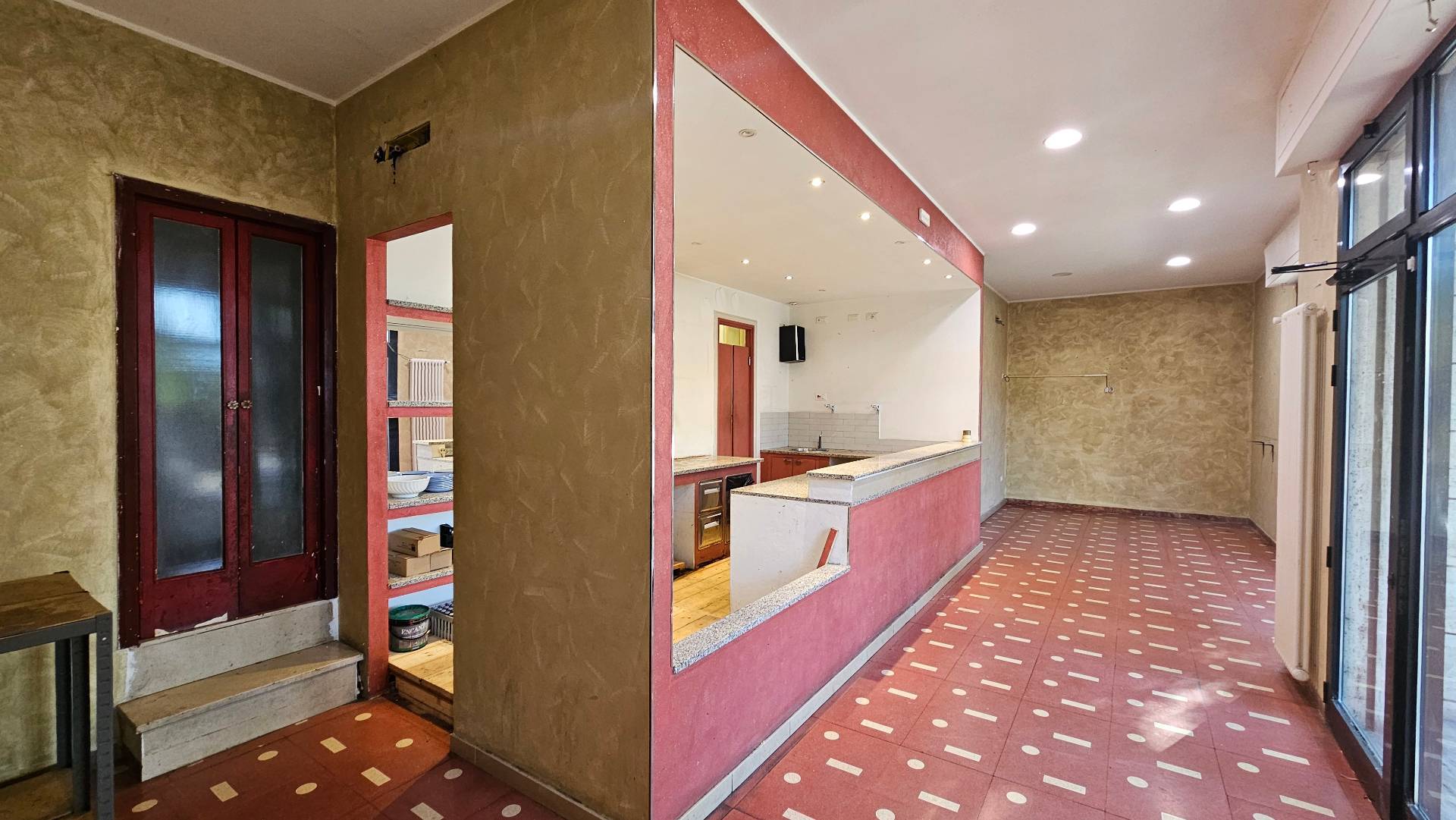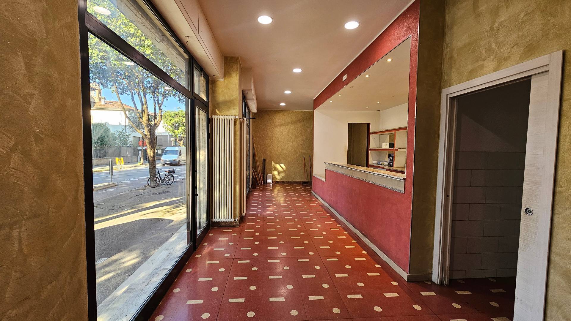 Il locale, ad uso commerciale, composto da un'ampia stanza d'ingresso, un magazzino, un ripostiglio, un bagno privato, un antibagno, un bagno a norma per disabili.
