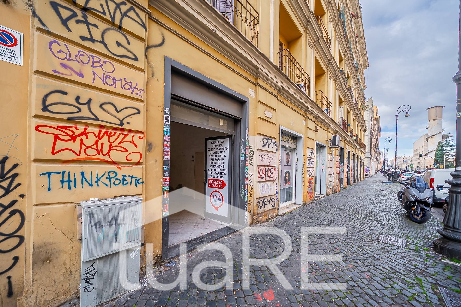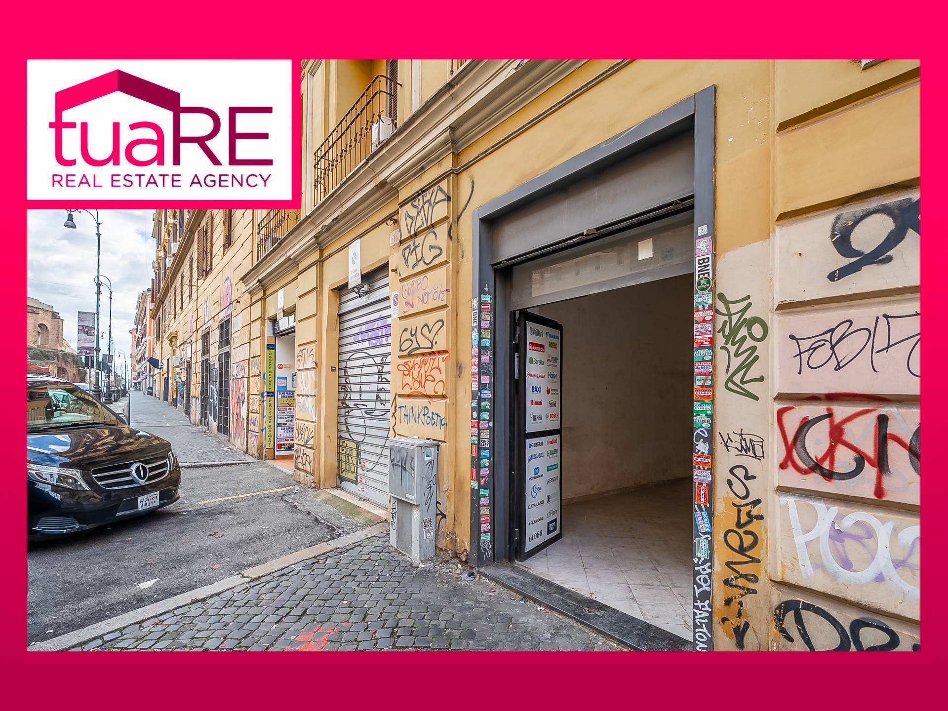 TUA RE Termini (Via Giolitti) OTTIMO INVESTIMENTO, splendido negozio con AMPIA VETRINA SU STRADA, in zona ad ALTISSIMO FLUSSO PEDONALE, alta visibilit, 2 ampi vani, SOFFITTI ALTI, possibilit alta rendita.