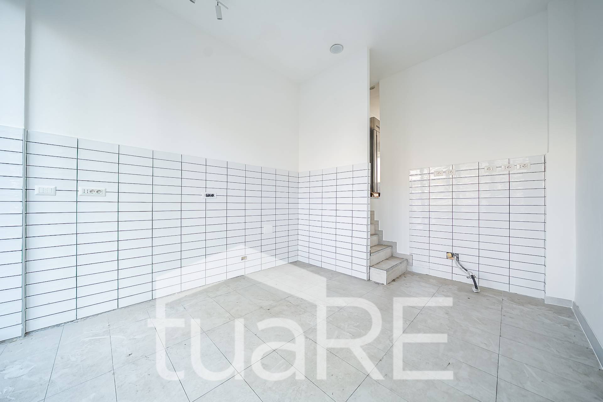 Internamente si sviluppa: al piano terra da un ampio vano Open Space mentre al livello soppalcato sono presenti un bagno di servizio e una spaziosa cucina attrezzata con zona lavaggio con ampie finestre.