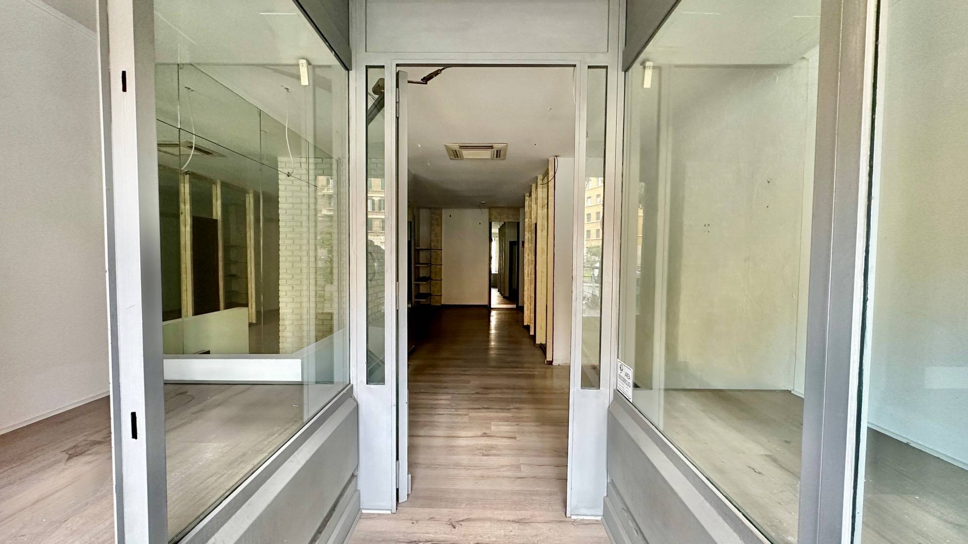 Al piano terra il locale un open space di cinquanta mq con ulteriori vetrine interne, l' altezza dei soffitti di circa quattro metri, attualmente controsoffittati dove sono alloggiati gli impianti di climatizzazione.
