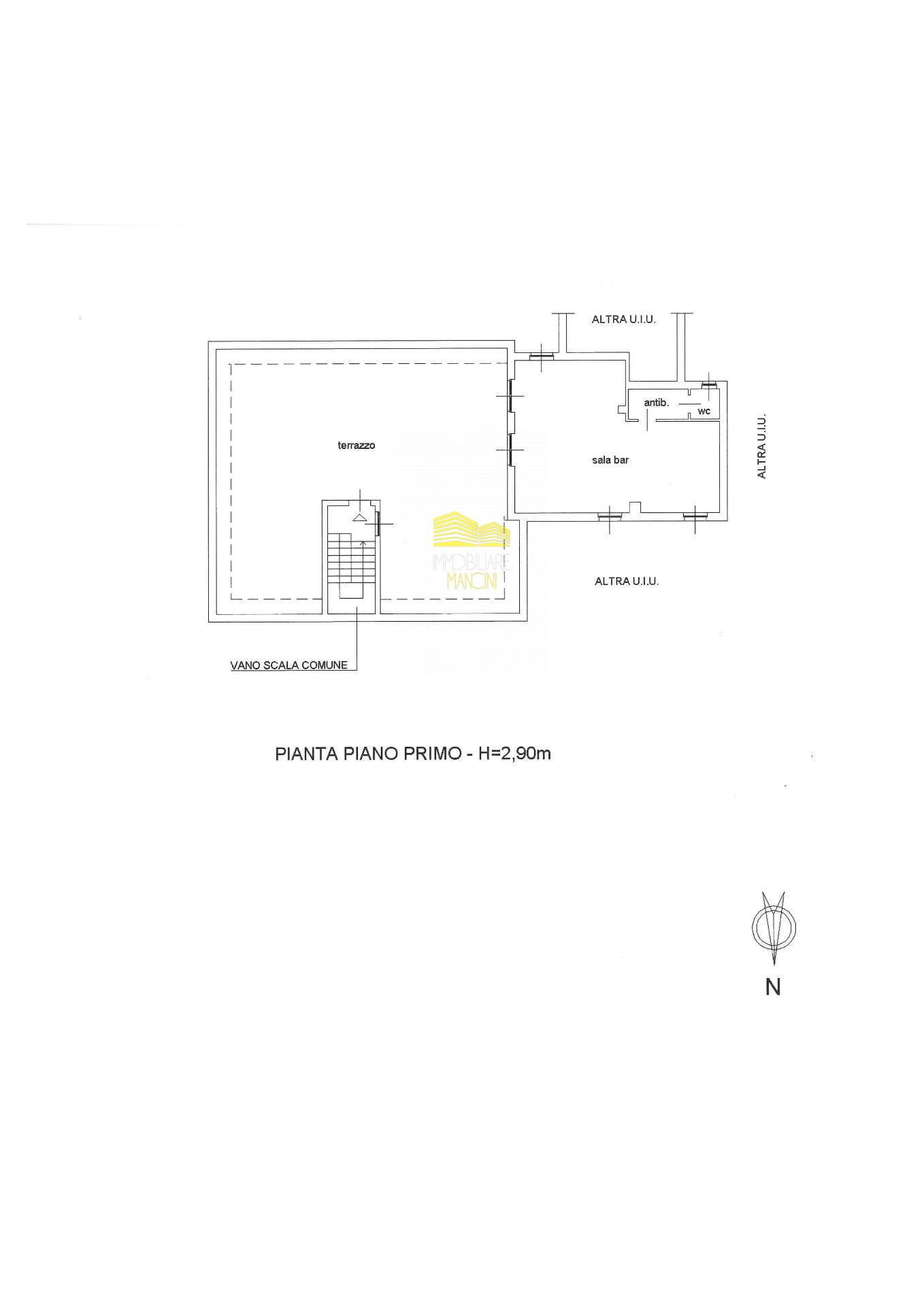 Al piano PRIMO troviamo un altra sala, anch' essa trasformabile in appartamento, di 65 mq complessivi con accesso diretto a un TERRAZZO di circa 150 mq, dove si ha la possibilit di ampliare la volumetria.