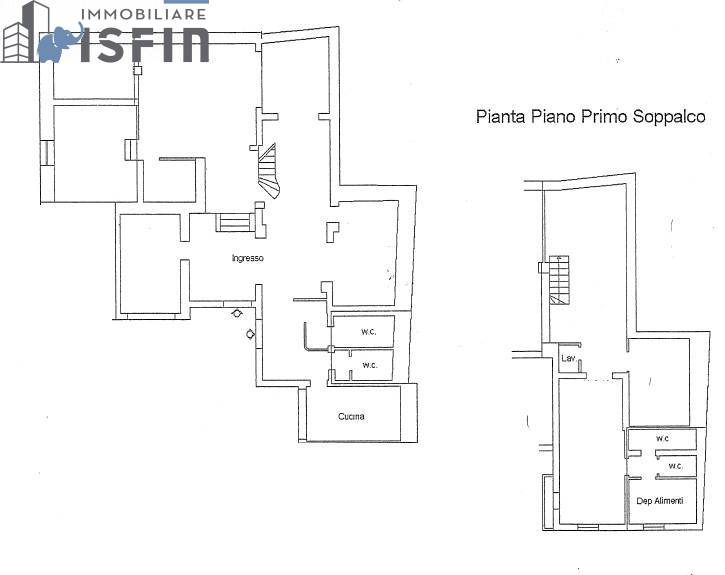 Piano Soppalco; Tre vani, lavanderia, deposito per alimenti e due bagni.
