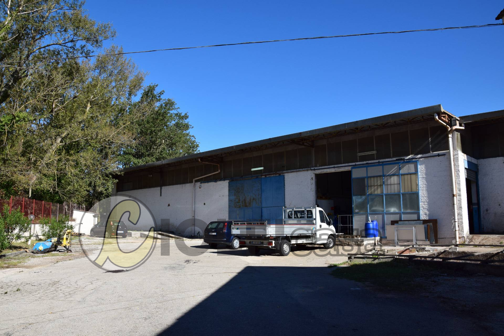 Il corpo di fabbrica complessivamente risulta essere di oltre 900 mq. nei tre locali adiacenti, realizzati in struttura metallica pilastri e tralicci, pareti in muratura e finestroni con copertura in lamiera metallica, oltre la pavimentazione in cemento.