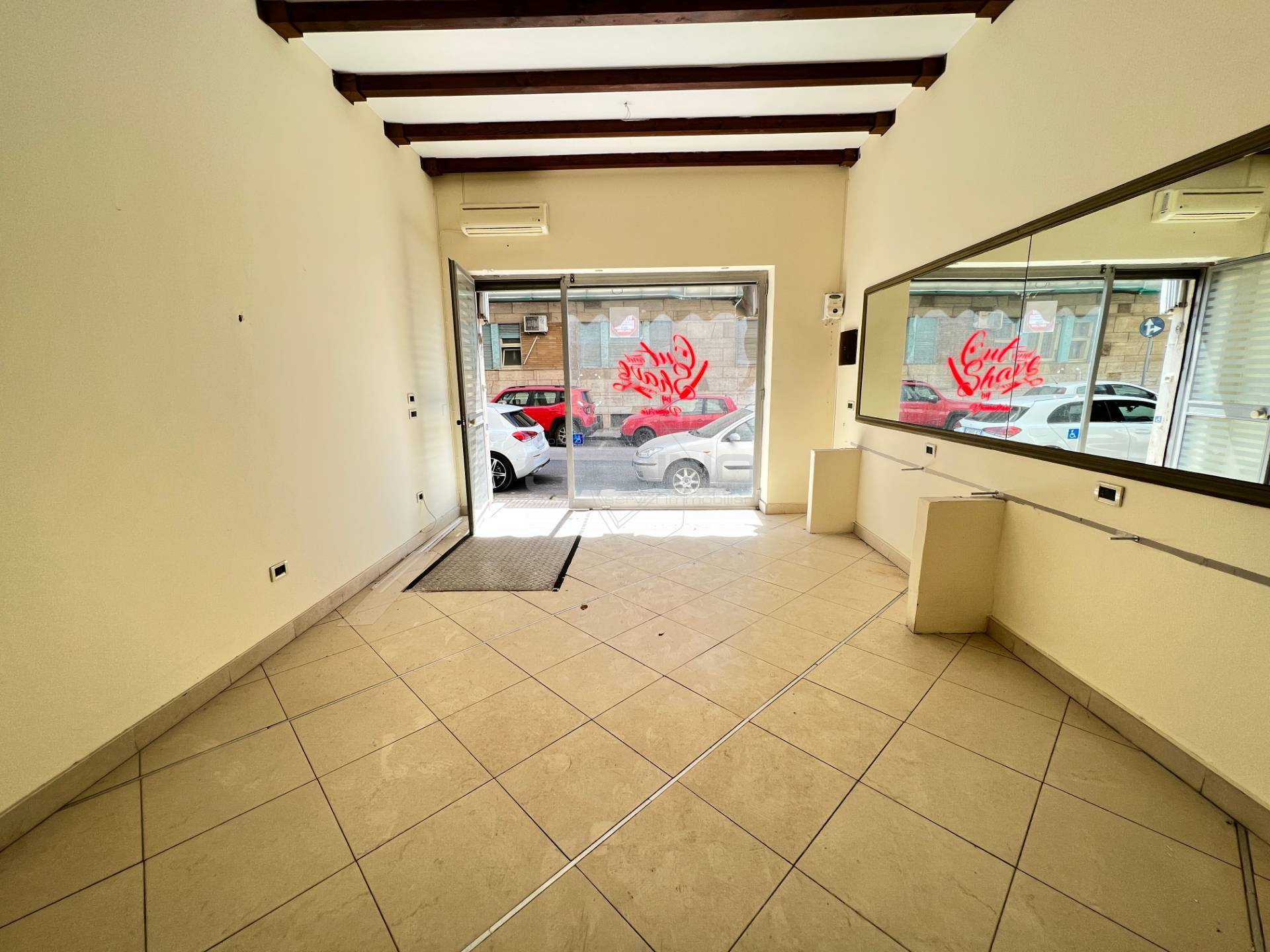 Internamente l'immobile si presenta con numero due vani commerciali oltre il bagno.
