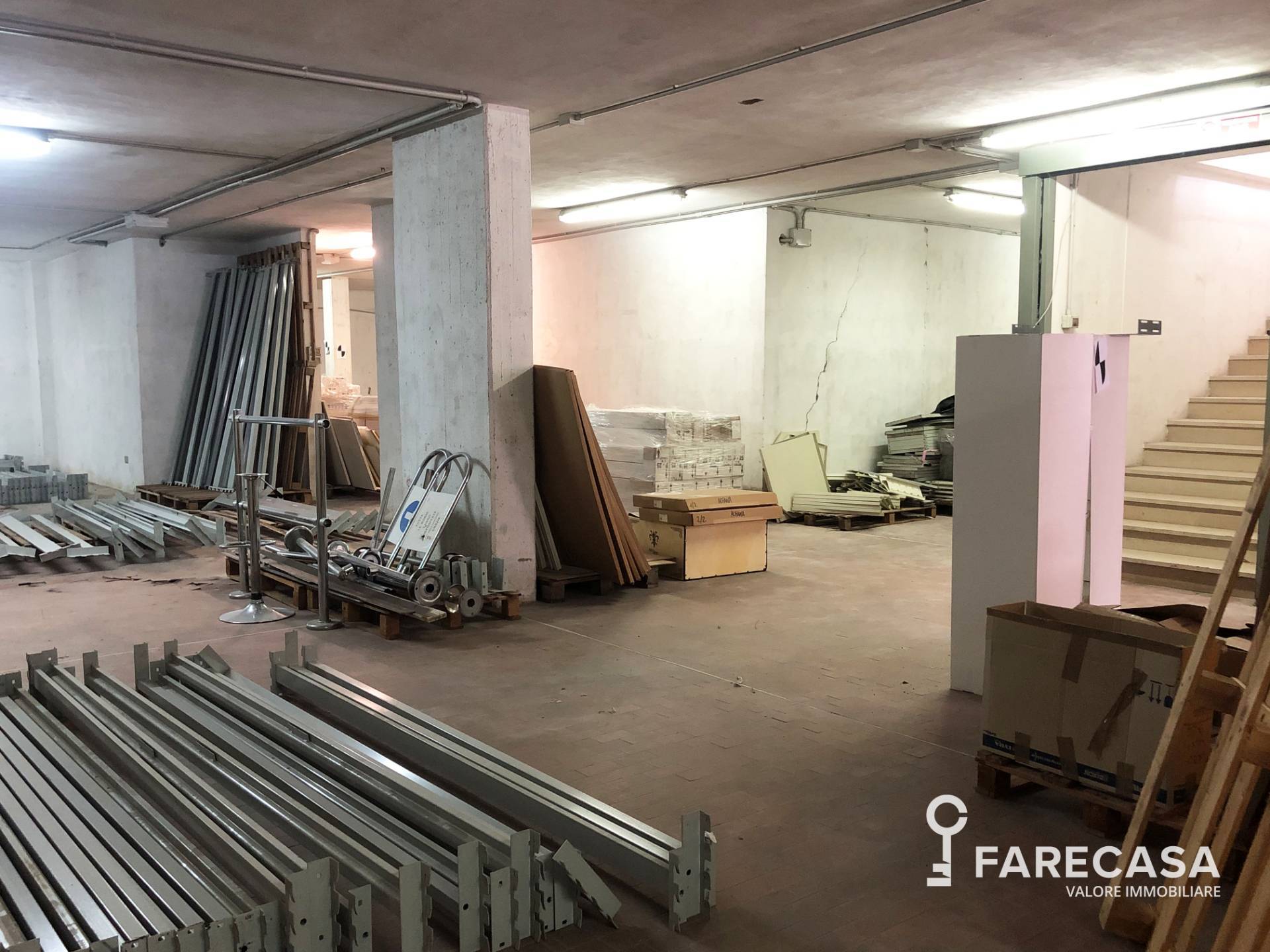 DETTAGLI: Piano TERRA: altezza pari a 3,56 m., ingresso pedonale su marciapiede e n. 3 vetrine attrezzate con serrande elettriche Piano SOTTOSTRADA: altezza pari a 2,70 m., collegato internamento al piano terra e ingresso al piano da portico interno con basculante ESTERNO: Il negozio posto al piano terra ha un ingresso ubicato al di sotto di un funzionale porticato con marciapiede, e dispone di n.2 sono fronte-strada e una posta sul lato e dall'elevata visibilit da strada grazie alla rampa di accesso che fiancheggia lo stabile.