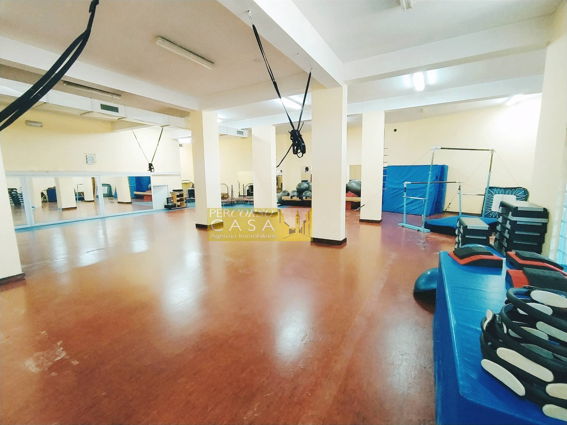 VIALE BOVIO - LOCALE MQ 800 ADIBITO A PALESTRA - DOPPIO ACCESSO VEICOLARE (Rif. V4124B) In VENDITA a TERAMO, zona Viale Bovio, LOCALE adibito a PALESTRA ed ATTIVITA' SPORTIVE (categoria catastale D/6) di mq 800 circa e composto da due ingressi, zona d'attesa - segreteria, tre sale (la principale di mq 240), stanza massaggi - ufficio, corridoio, due locali ripostiglio, quattro bagni (di cui uno adibito a zona lavanderia), cinque stanze spogliatoio (una dotata anche di sauna) e due vani tecnici.