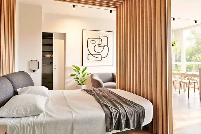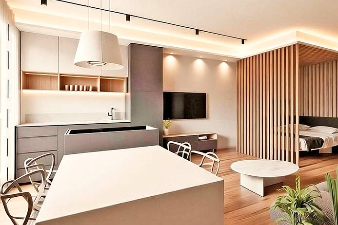Internamente l'appartamento sar composto da ampio ingresso con zona lavanderia, cabina armadio, bagno e un unico ampio ambiente open space con cucina ad isola e grande e luminosissima vetrata panoramica.
