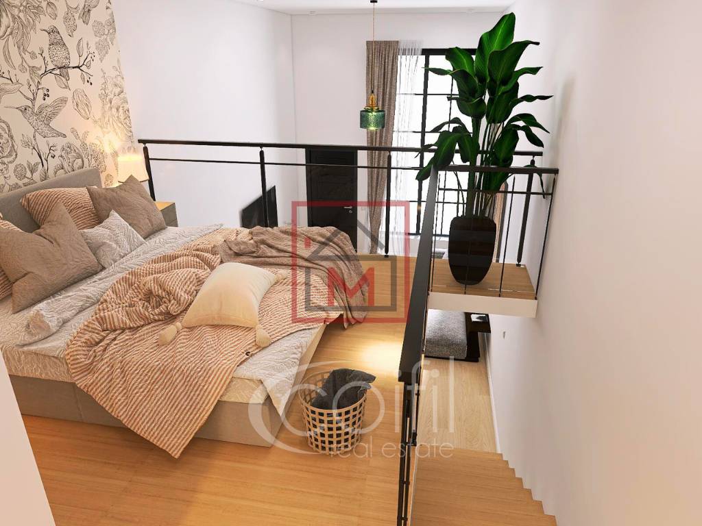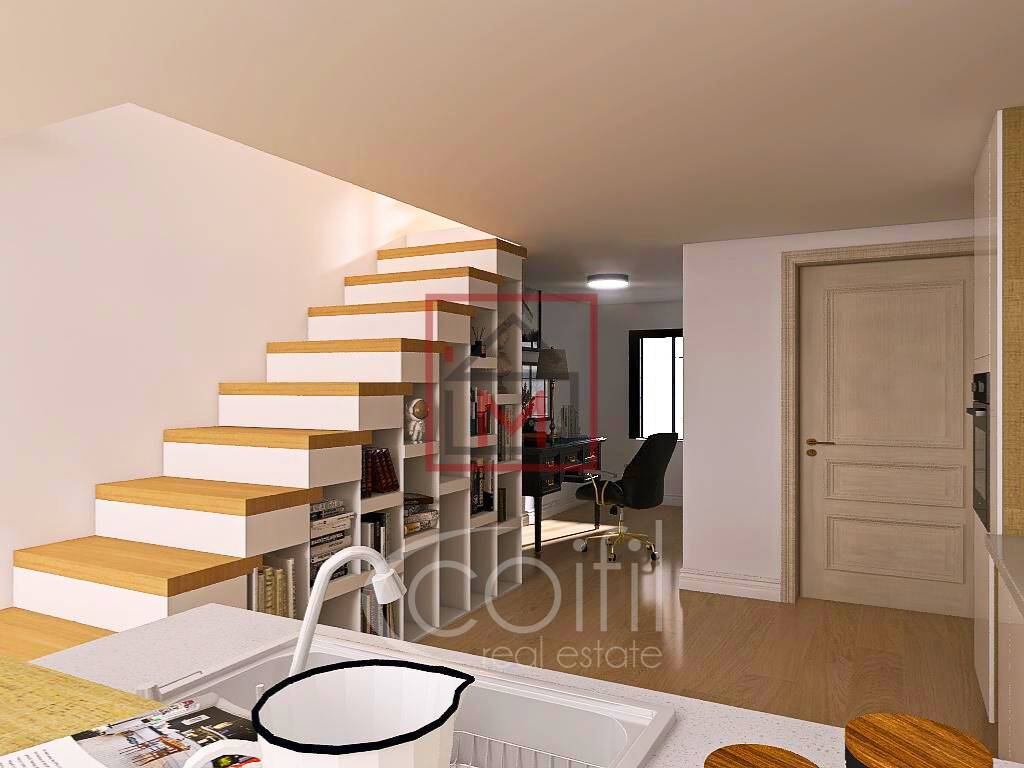 Completa l'appartamento l'ampia zona notte soppalcata con un comodo angolo studio.