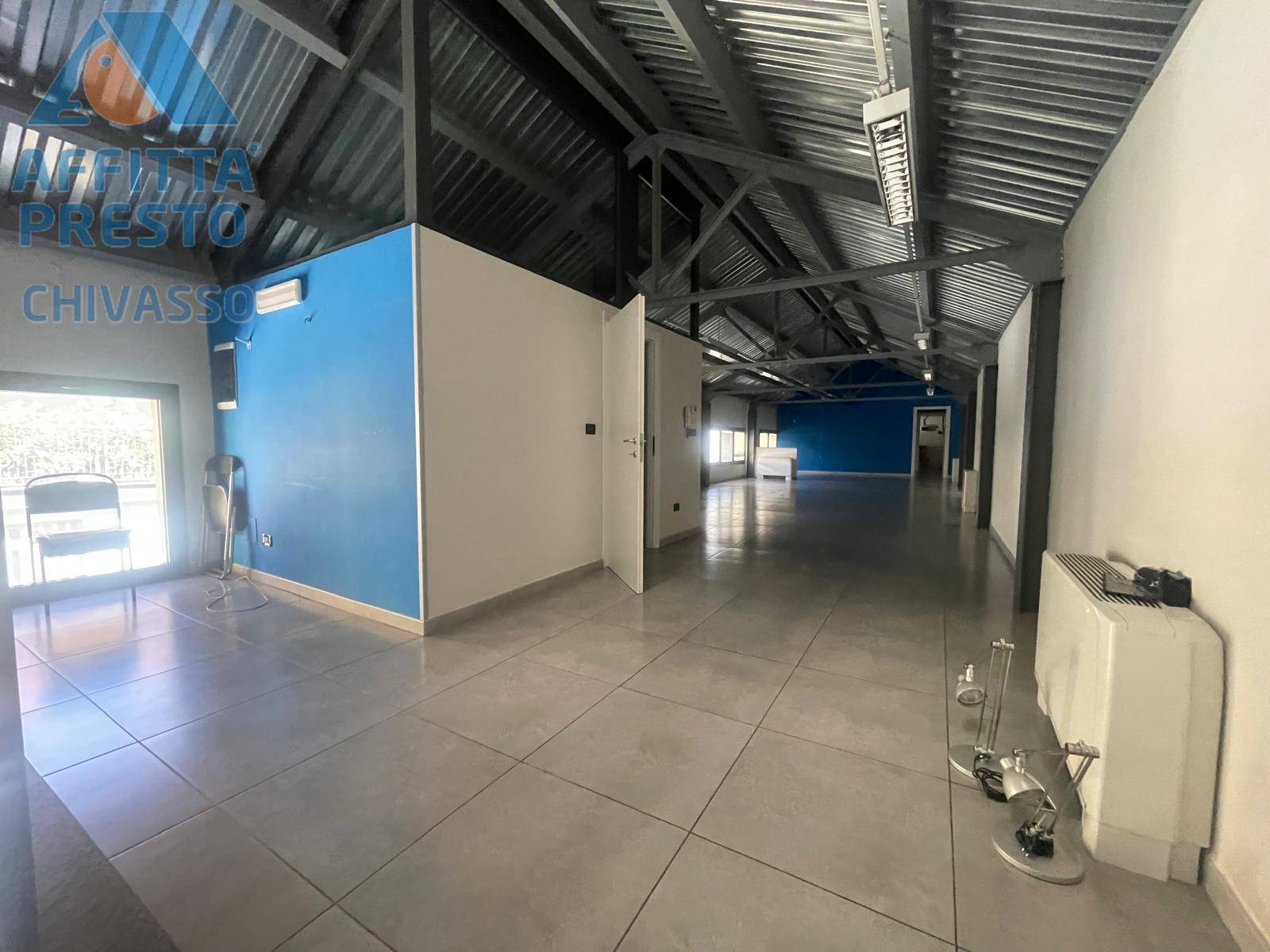 RIF 597 AFFITTA PRESTO CHIVASSO Questa soluzione in affitto a Chivasso si sviluppa su due livelli, offrendo un'ampia e funzionale area di lavoro di circa 300 metri quadrati complessivi.