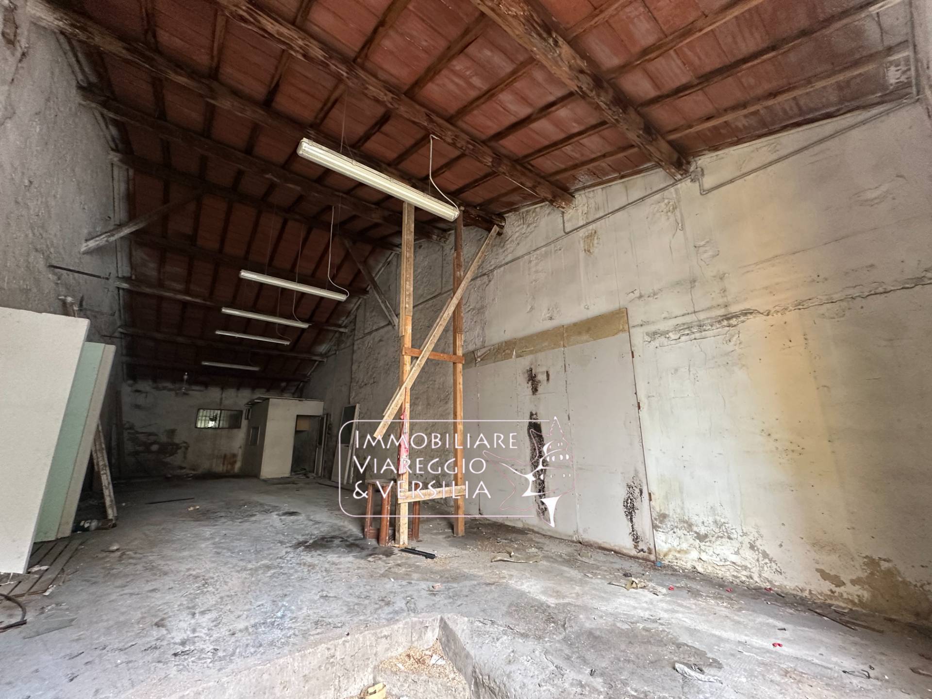 Viareggio - Varignano, su strada principale SI AFFITTA capannone uso magazzino di 105 mq composto da unico vano con altezza da 5 a 8 metri dotato di resede di mq 30 per carico/scarico merci Possibilit di parcheggiare un mezzo.