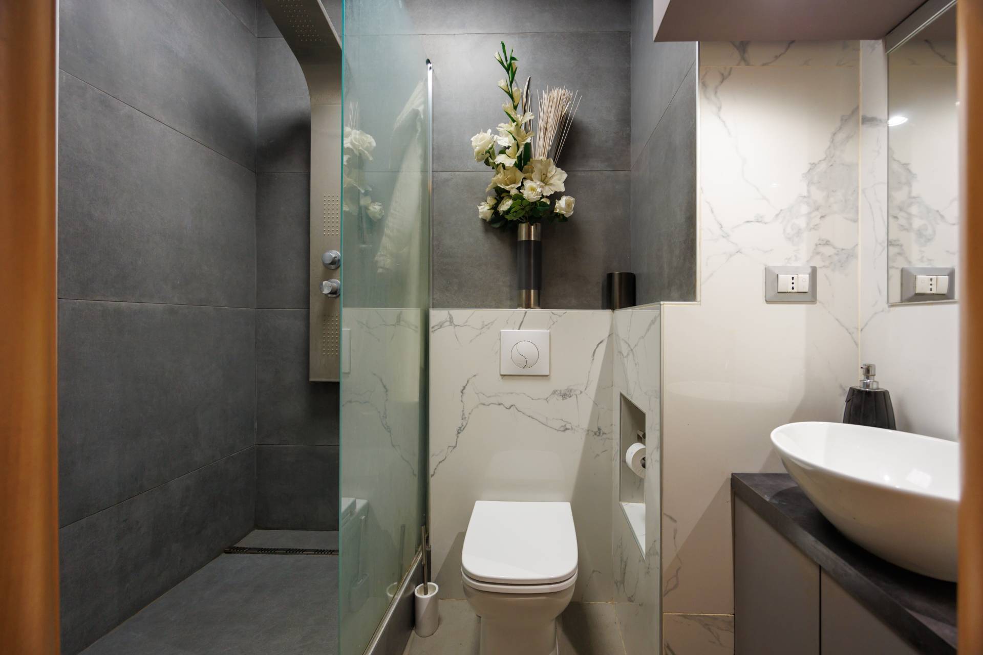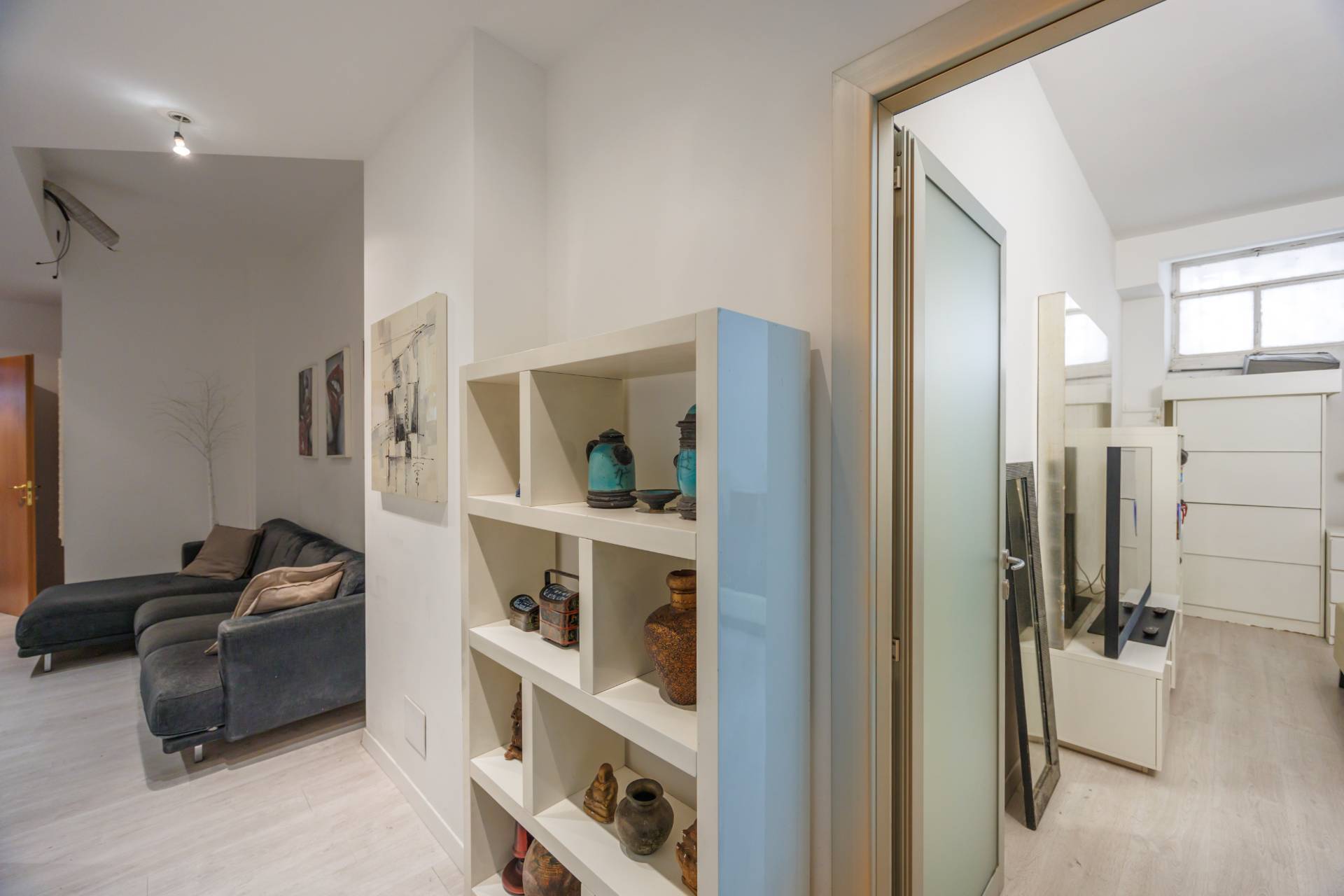 Pavimentazione in gres chiaro effetto legno, infissi in PVC con doppi vetri, riscaldamento a pavimento centralizzato, porta blindata.