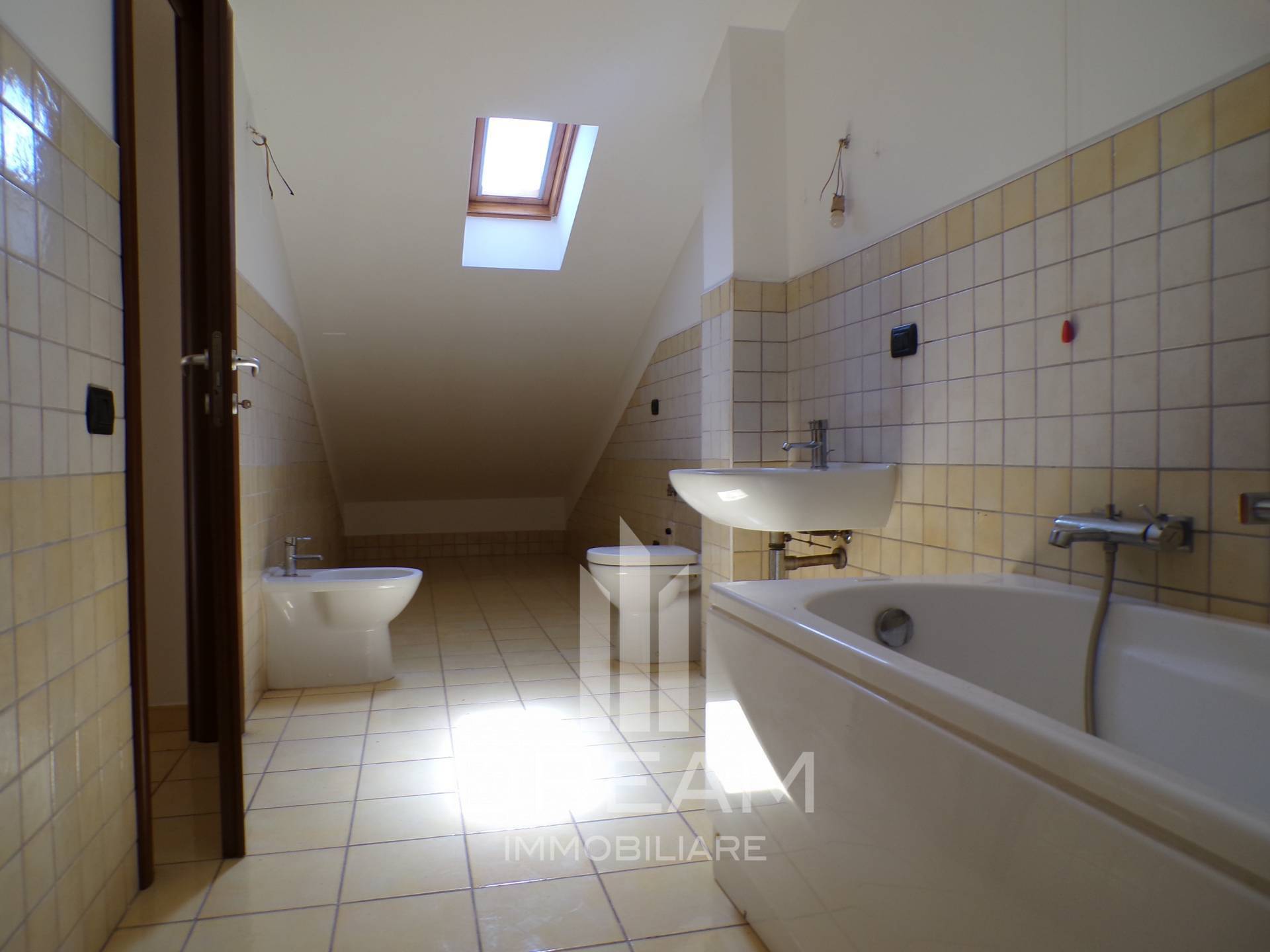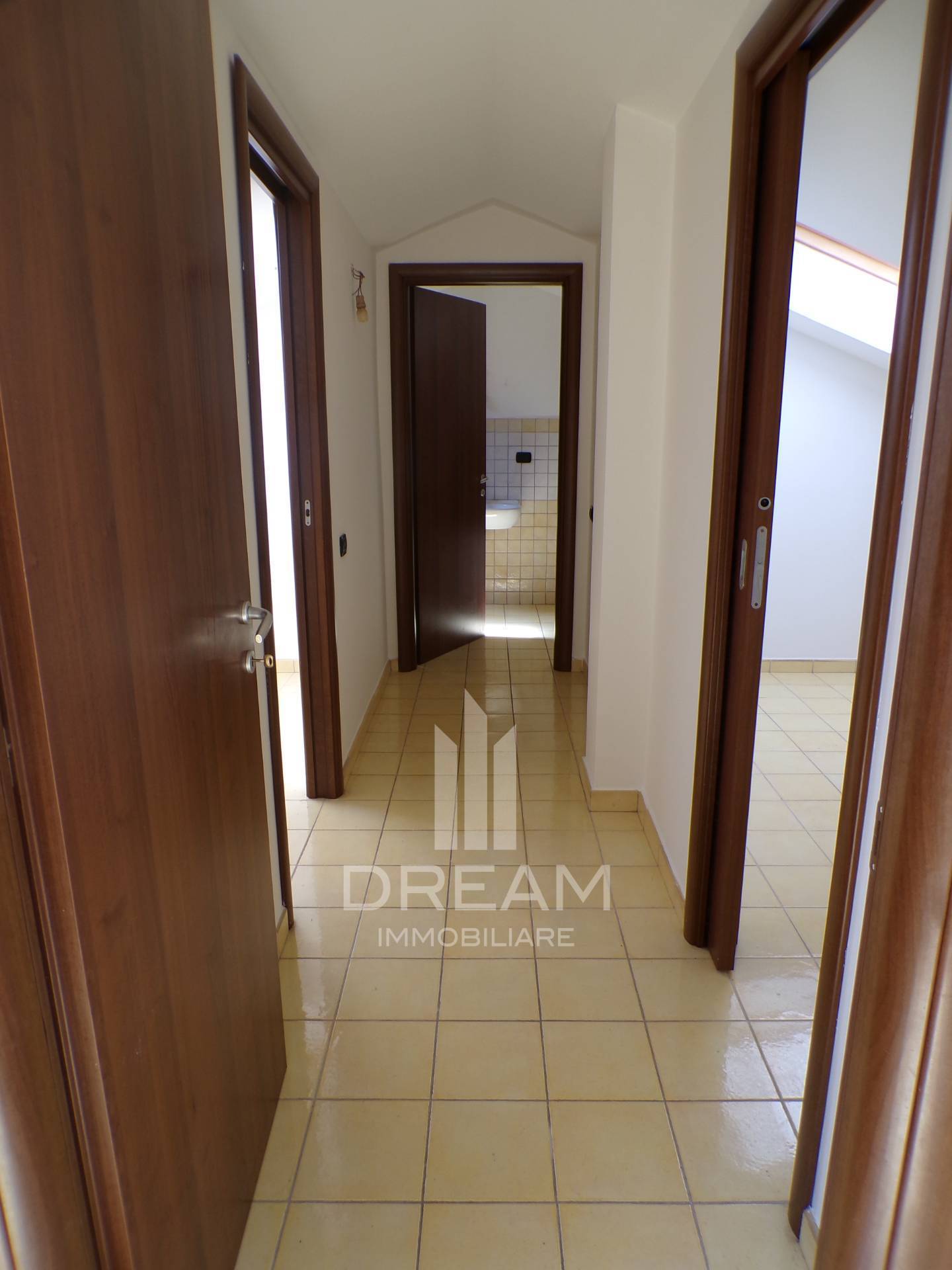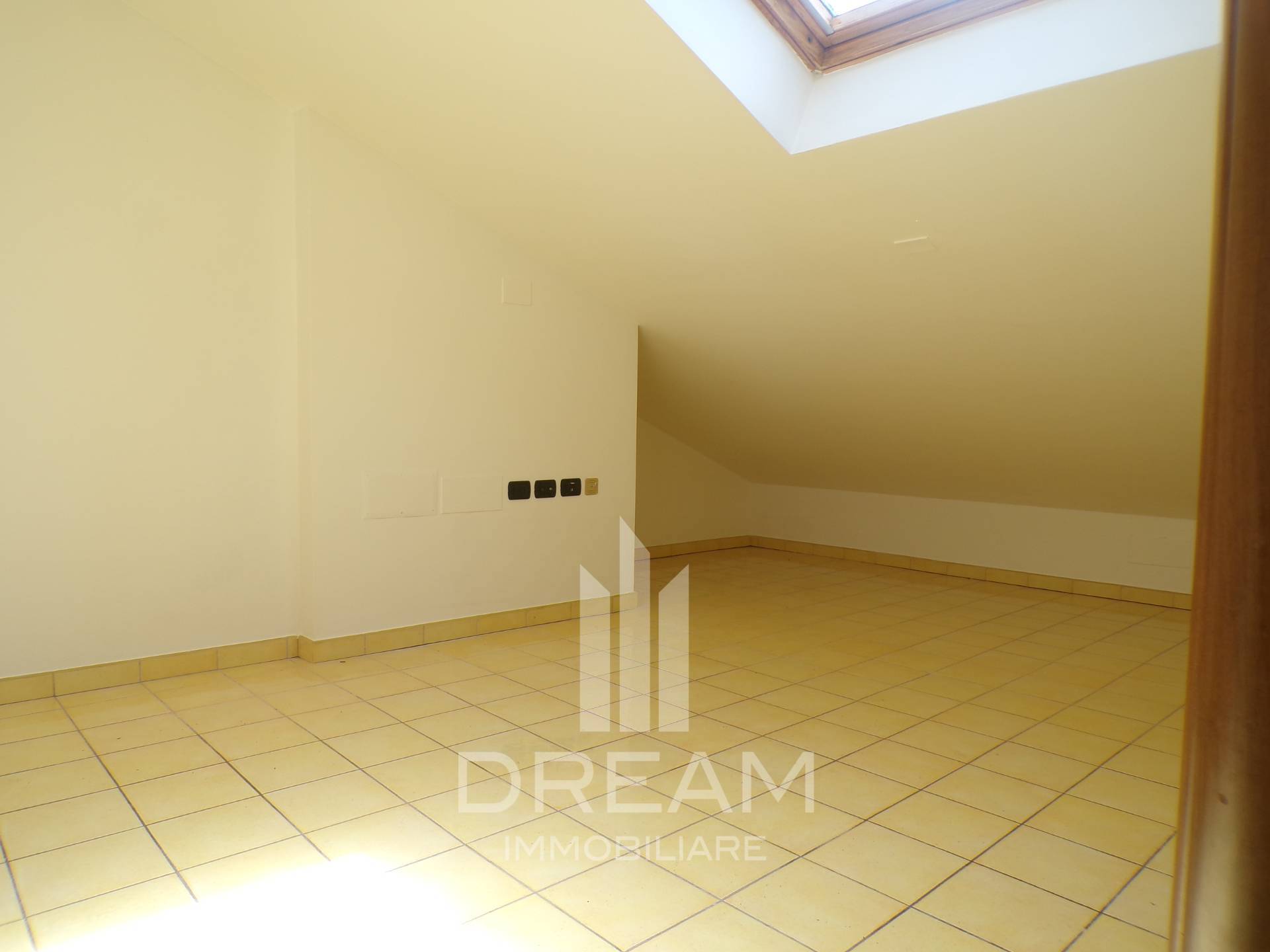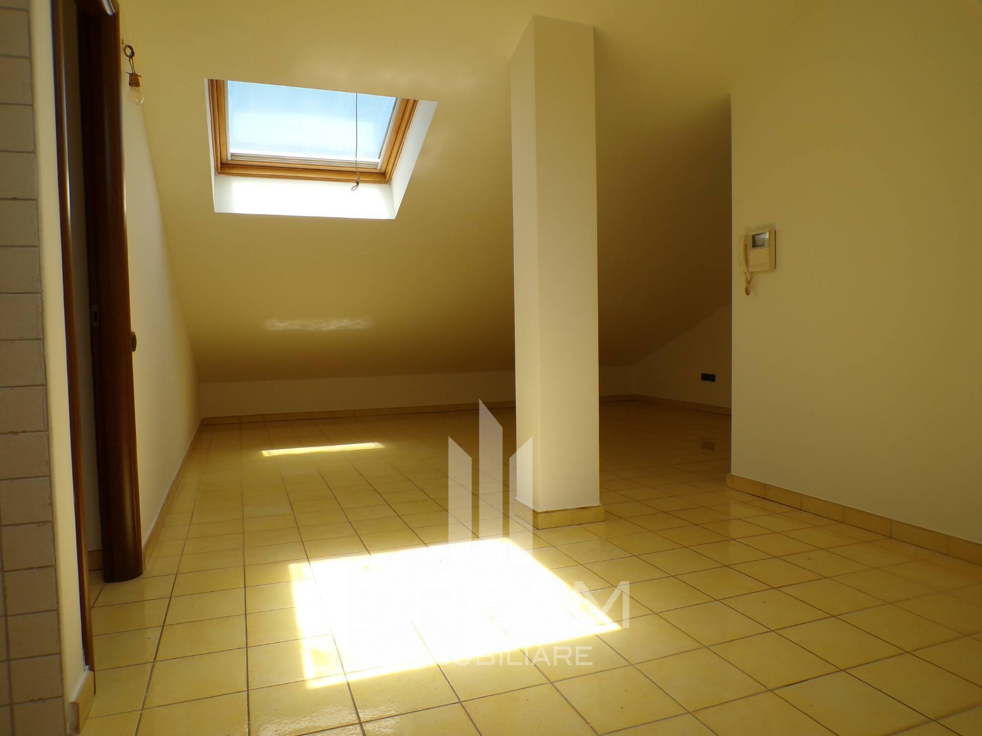 La mansarda si compone di un ingresso, soggiorno con angolo cottura, disimpegno, camera da letto, camera studio, bagno con vasca e zona lavanderia.