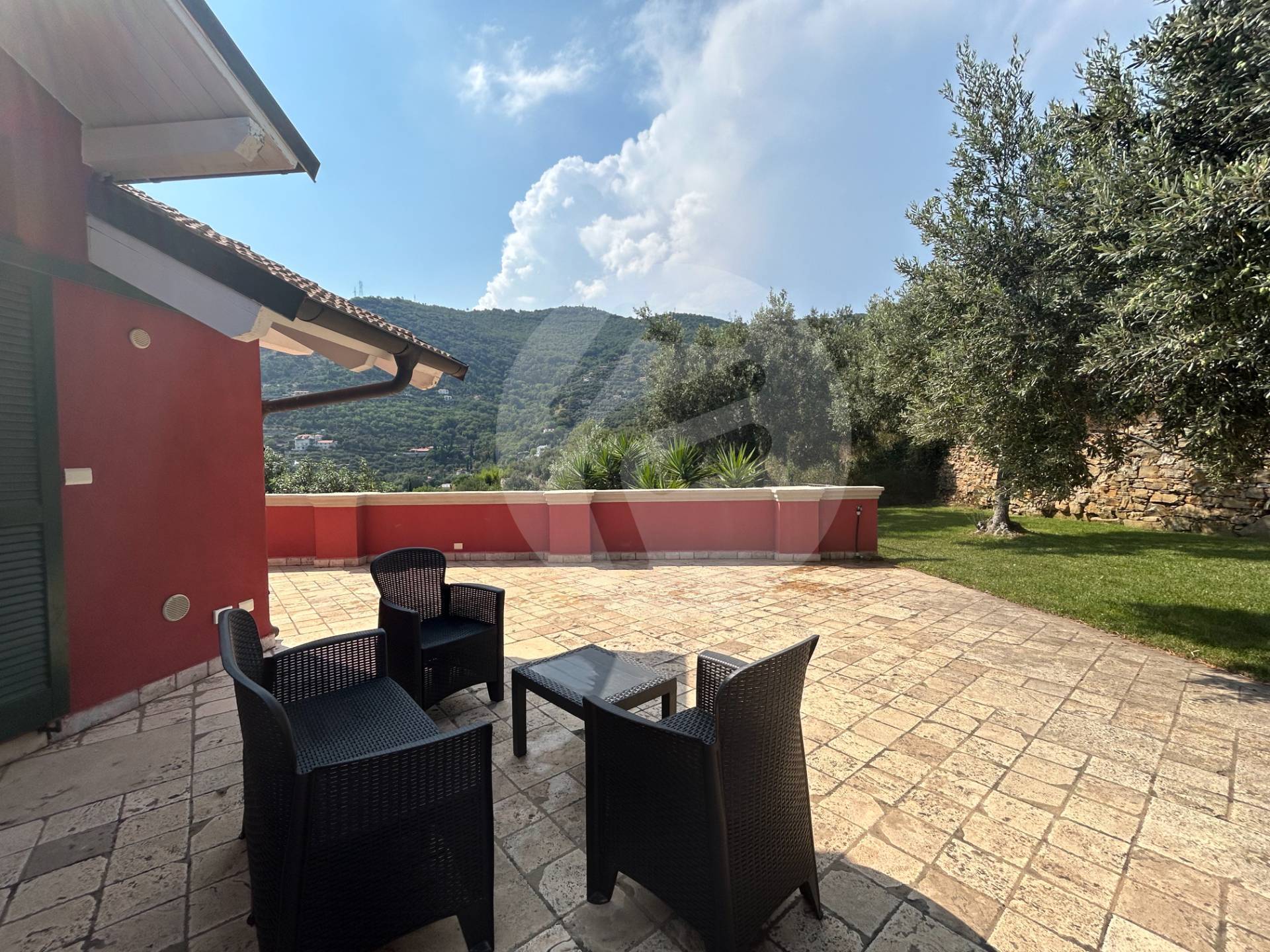 In posizione dominante con spettacolare vista di tutto il Golfo di Alassio, proponiamo a soli 3 km dal mare in zona residenziale e servita, appartamento in villa di recente ristrutturazione composto da : ingresso indipendente da corte esterna, ampio terrazzo di oltre 60 mq , soggiorno con angolo cottura, camera matrimoniale, bagno finestrato.