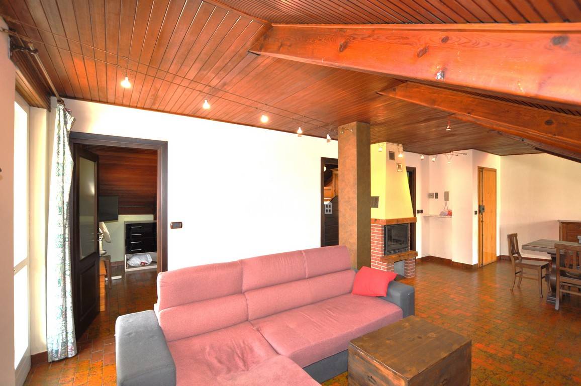 Lingresso si apre su un accogliente soggiorno arricchito da un caratteristico camino, perfetto per creare unatmosfera calda e rilassante.