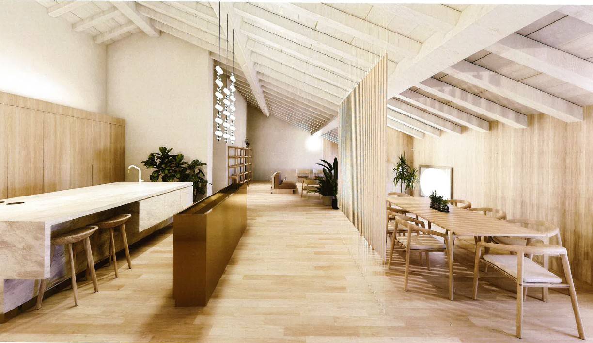 Gli spazi, impreziositi da ampie altezze e travi a vista restaurate, respirano luce e armonia.