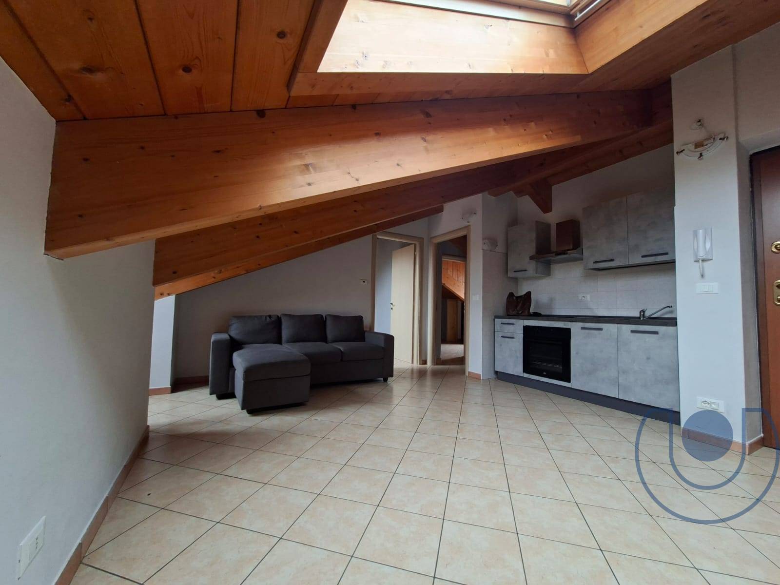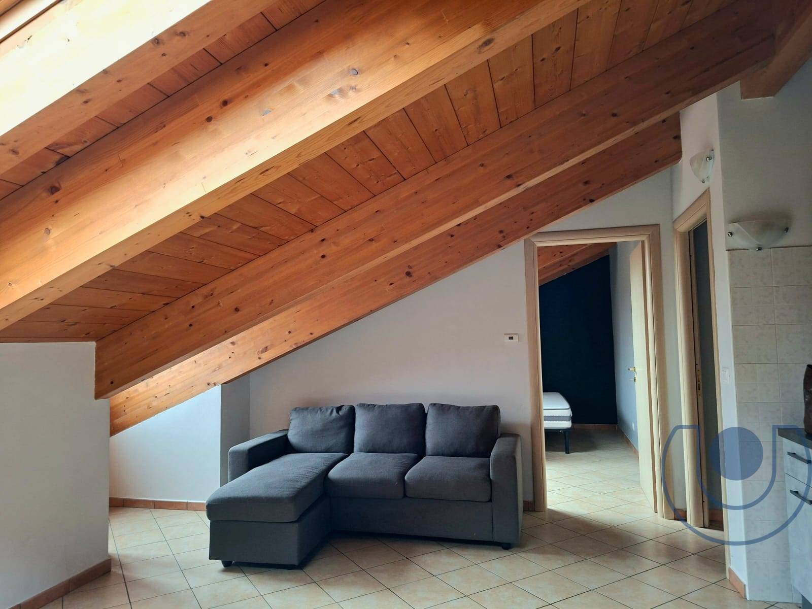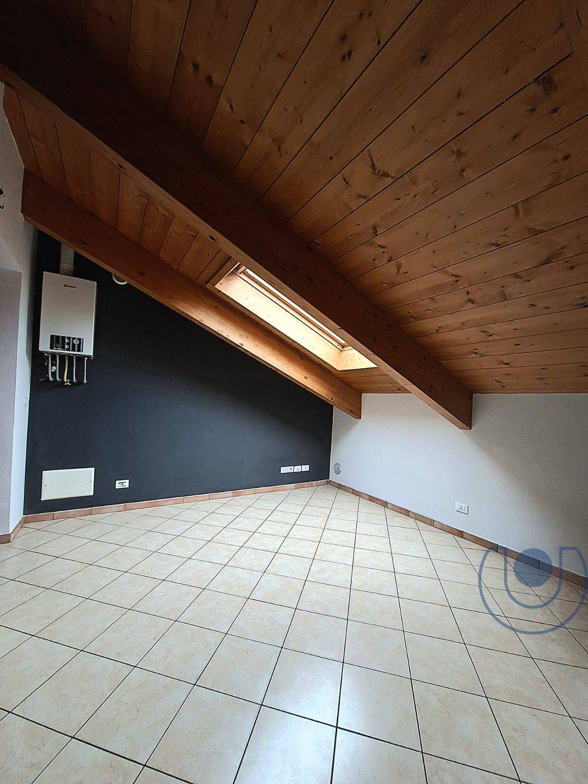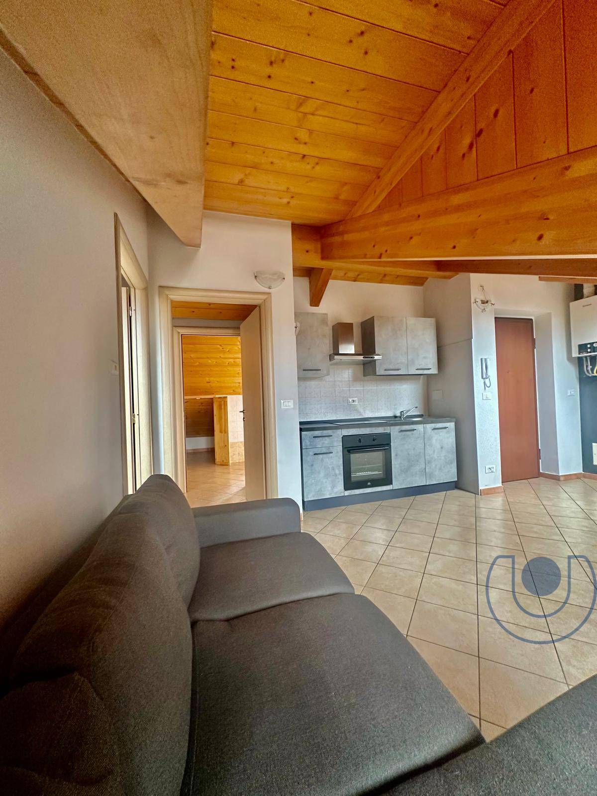 L'appartamento di recente costruzione dotato di caldi soffitti in legno con travi a vista.