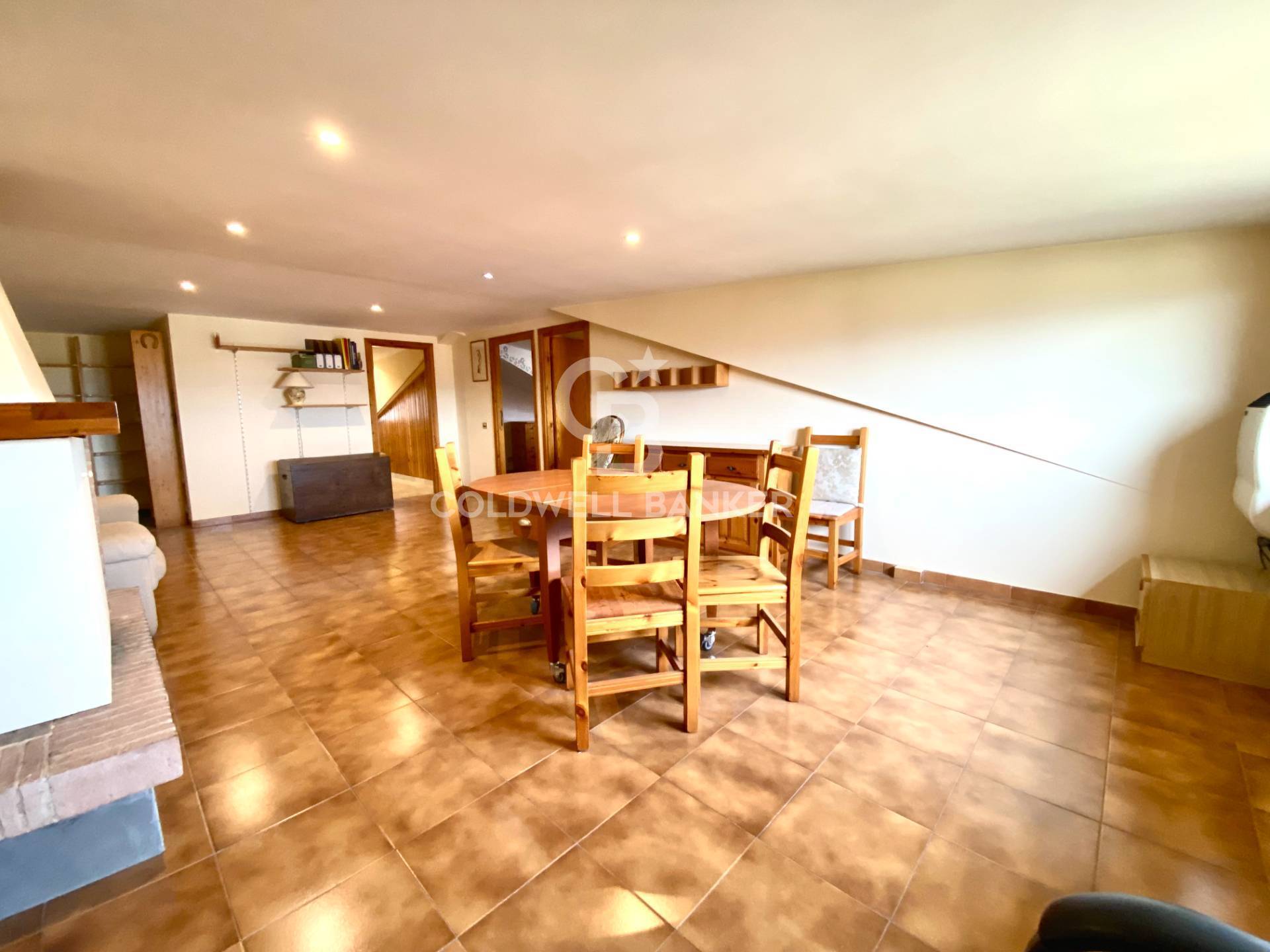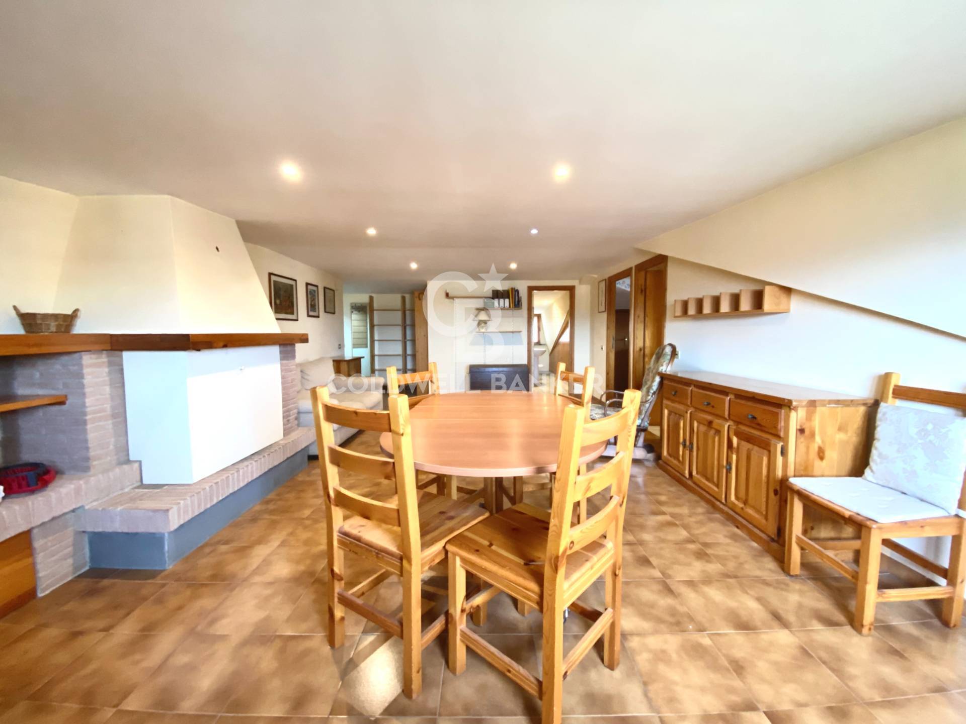 La mansarda si presenta con un salone accogliente impreziosito da un camino, un cucinotto separato, una camera da letto ben proporzionata e un bagno dotato di doccia e finestra.