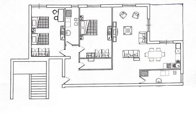 La soluzione, da ultimare, grazie all'ampia metratura, si presta alla realizzazione di diverse distribuzioni interne.