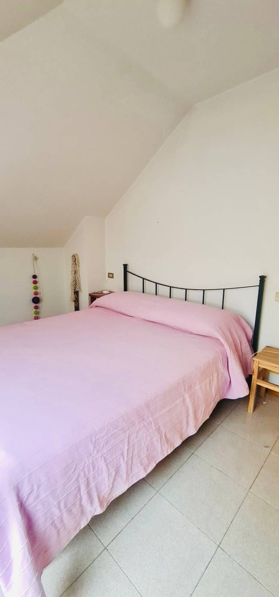 La mansarda composta da ingresso su soggiorno con angolo cottura, una camera da letto matrimoniale, un seconda camera/studio e un bagno.