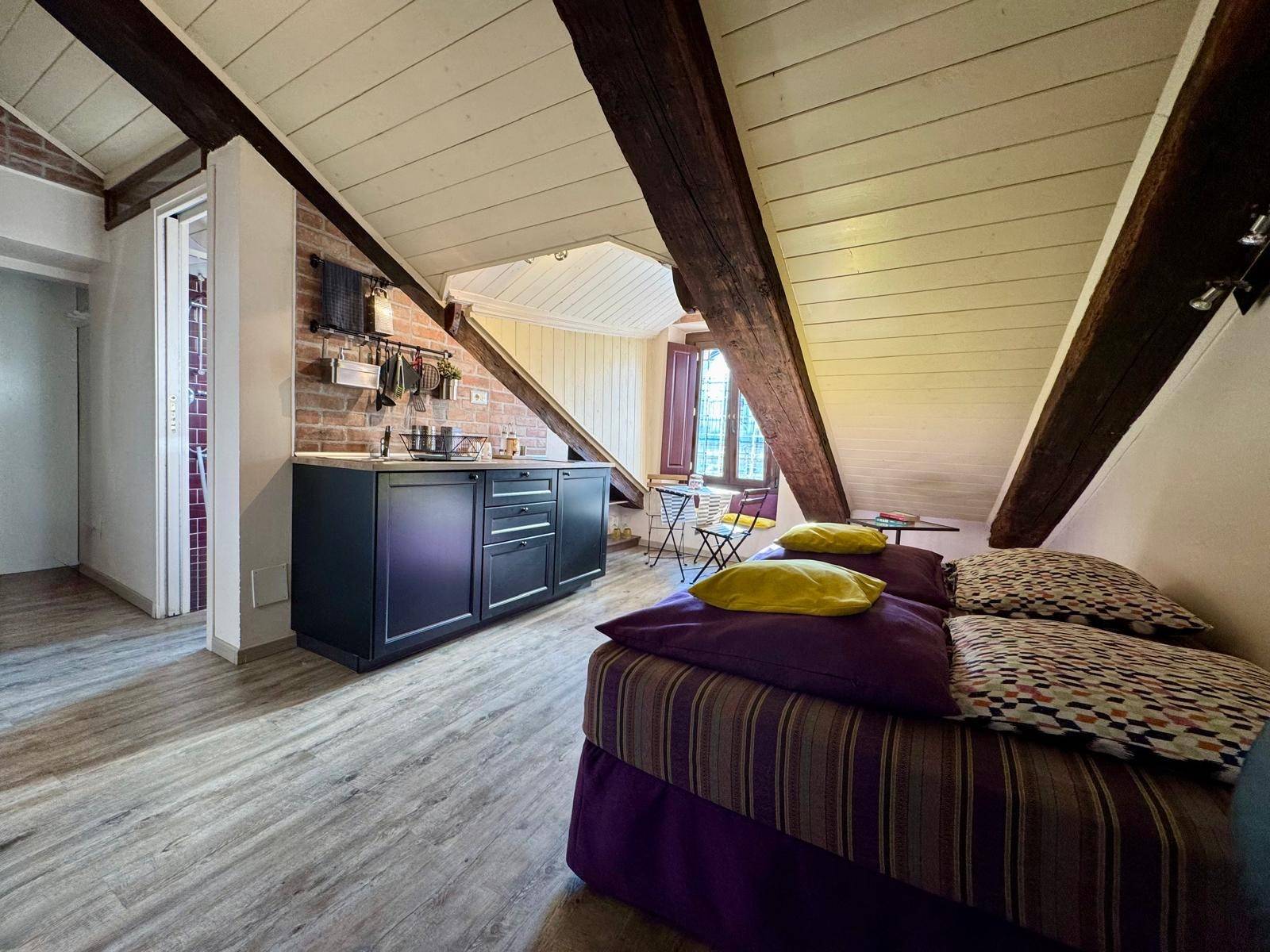 Proponiamo in vendita in curato e signorile stabile di fine'800 una mansarda di mq. 28 ca. sita al quinto piano con servizio di ascensore al piano.