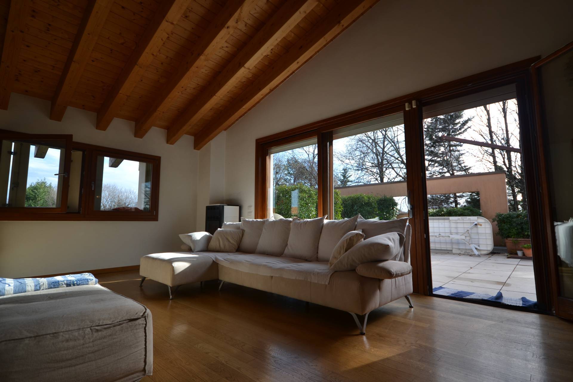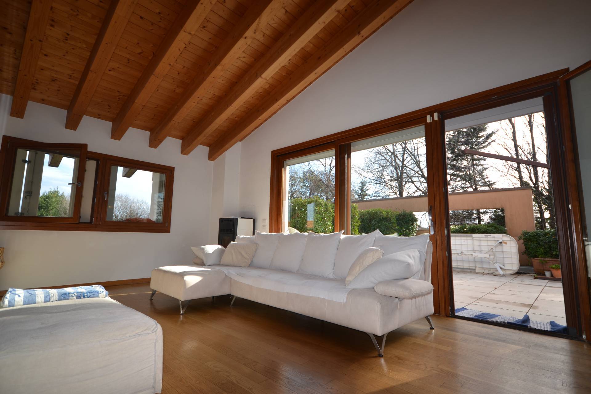 Ampie vetrate che si aprono sulla terrazza, donando luminosit e una vista mozzafiato.