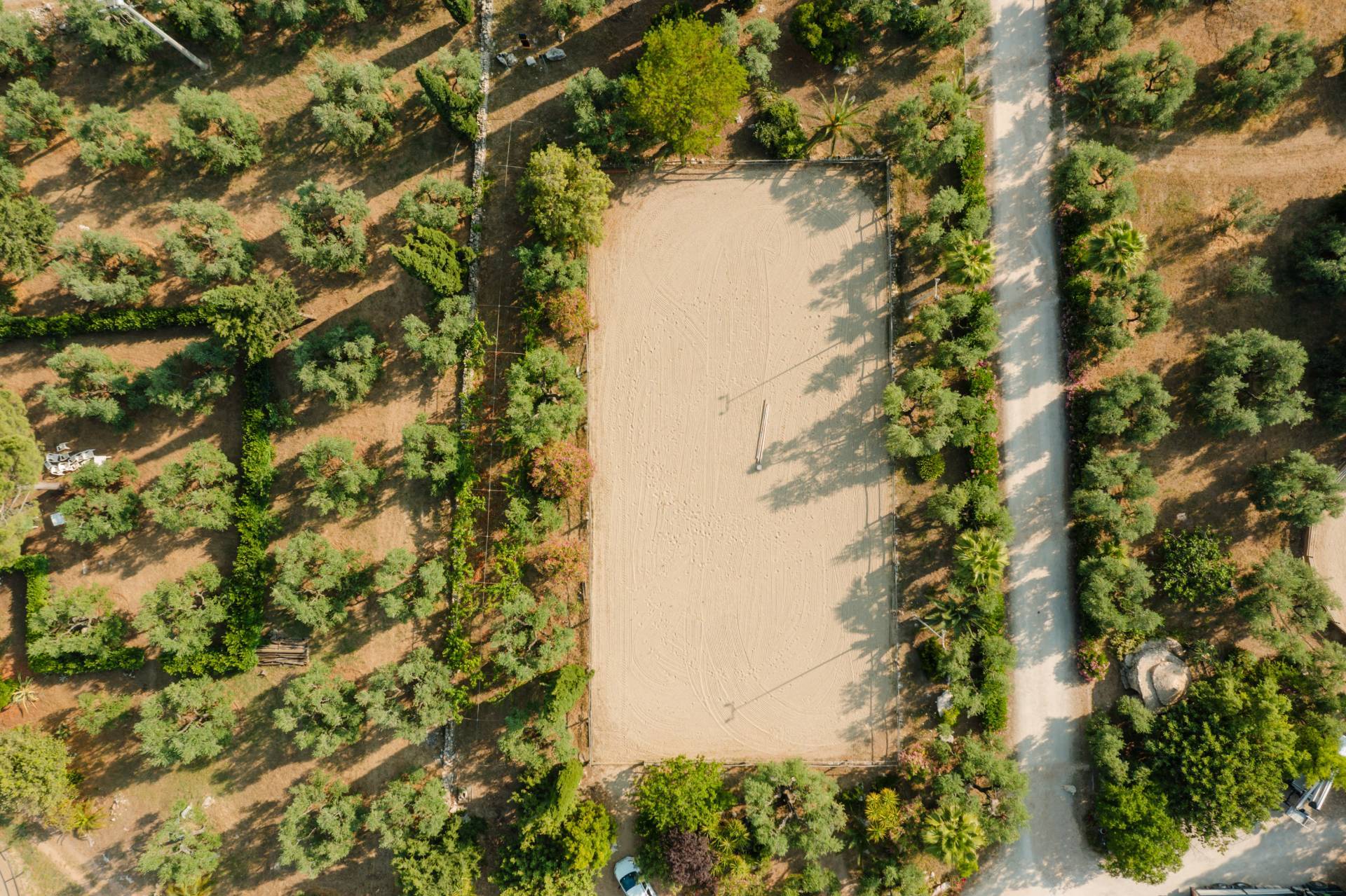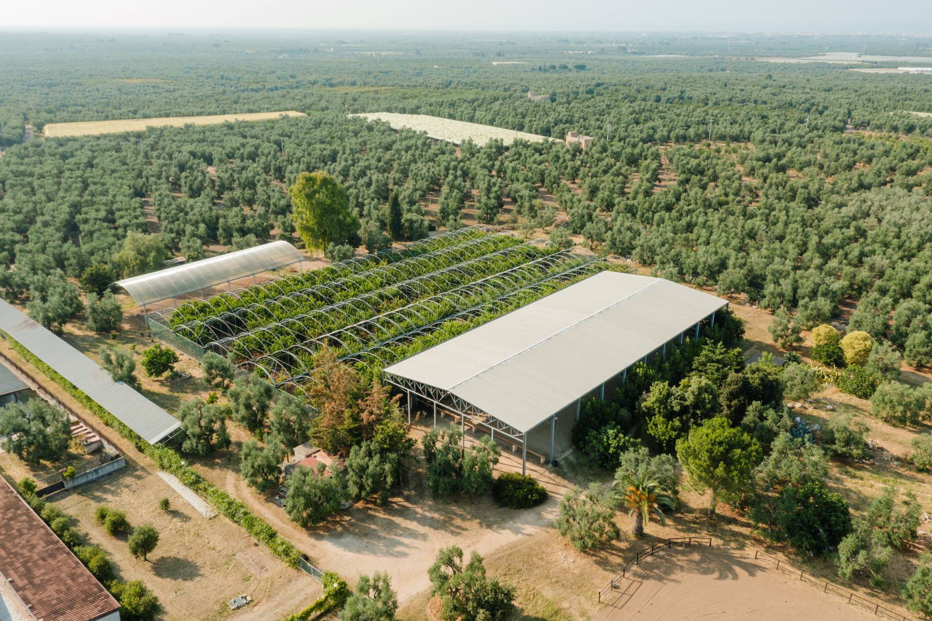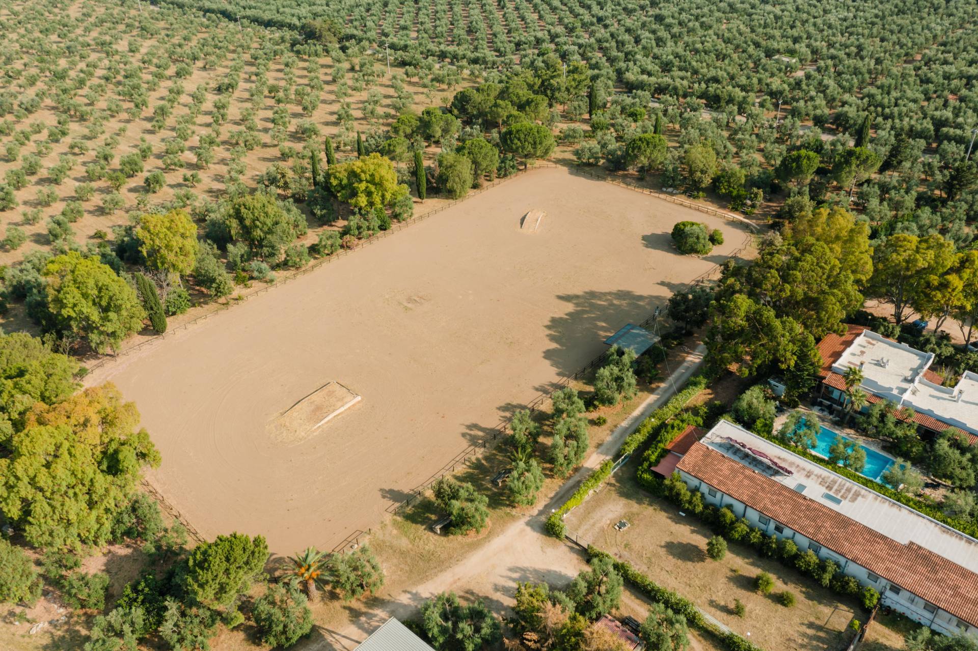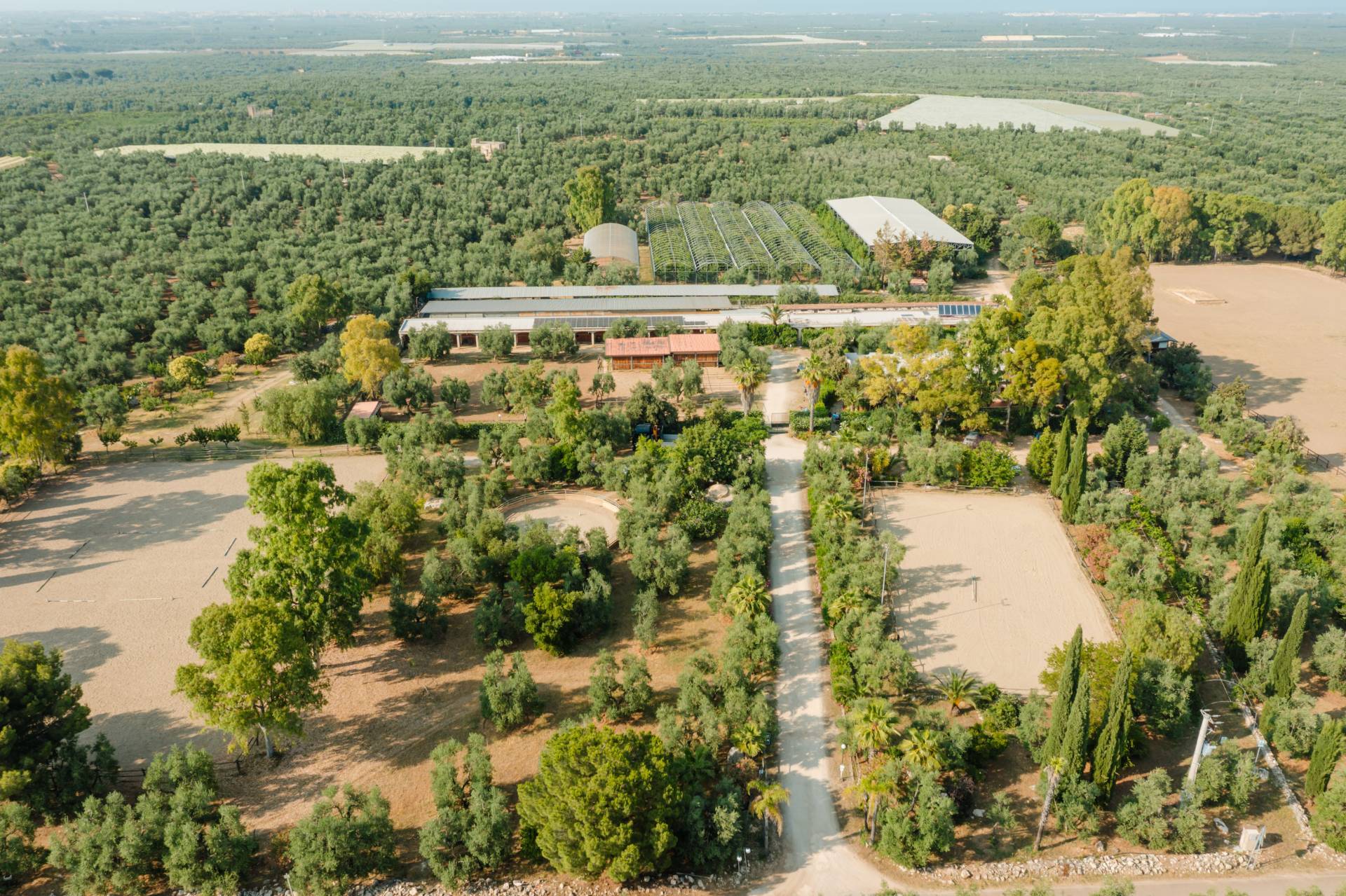 Completano la parte funzionale una lavanderia di 48 mq, scuderie con 38 box equestri, campi da equitazione in sabbia, selleria, spogliatoi, un maneggio coperto da 1.100 mq con impianto a pioggia e una masseria didattica di 190 mq, ideali per attivit didattiche ed esperienziali legate al territorio.