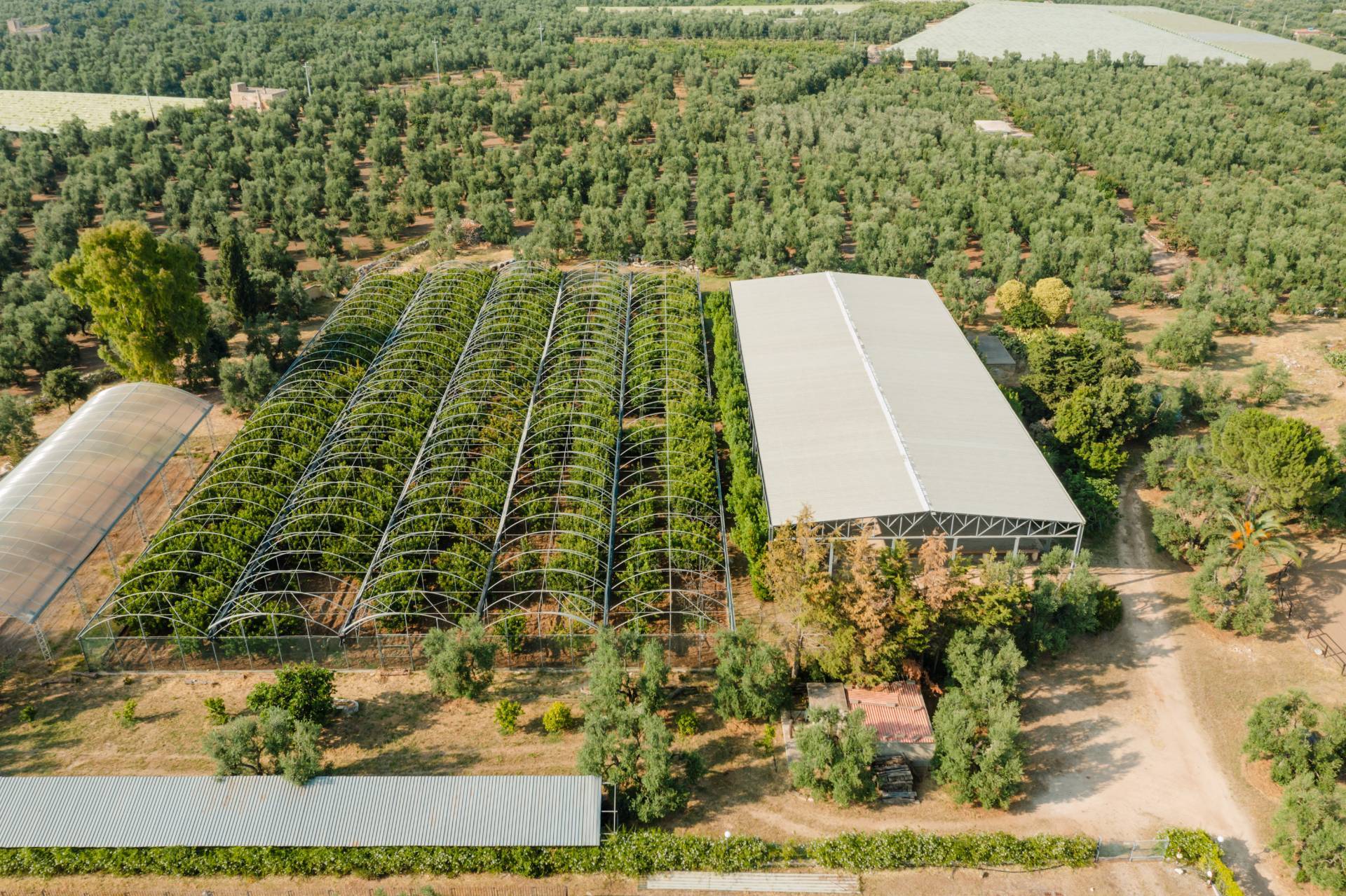 Due serre, una di 3.500 mq per i ciliegi e una struttura in acciaio di 360 mq, completano il quadro produttivo.