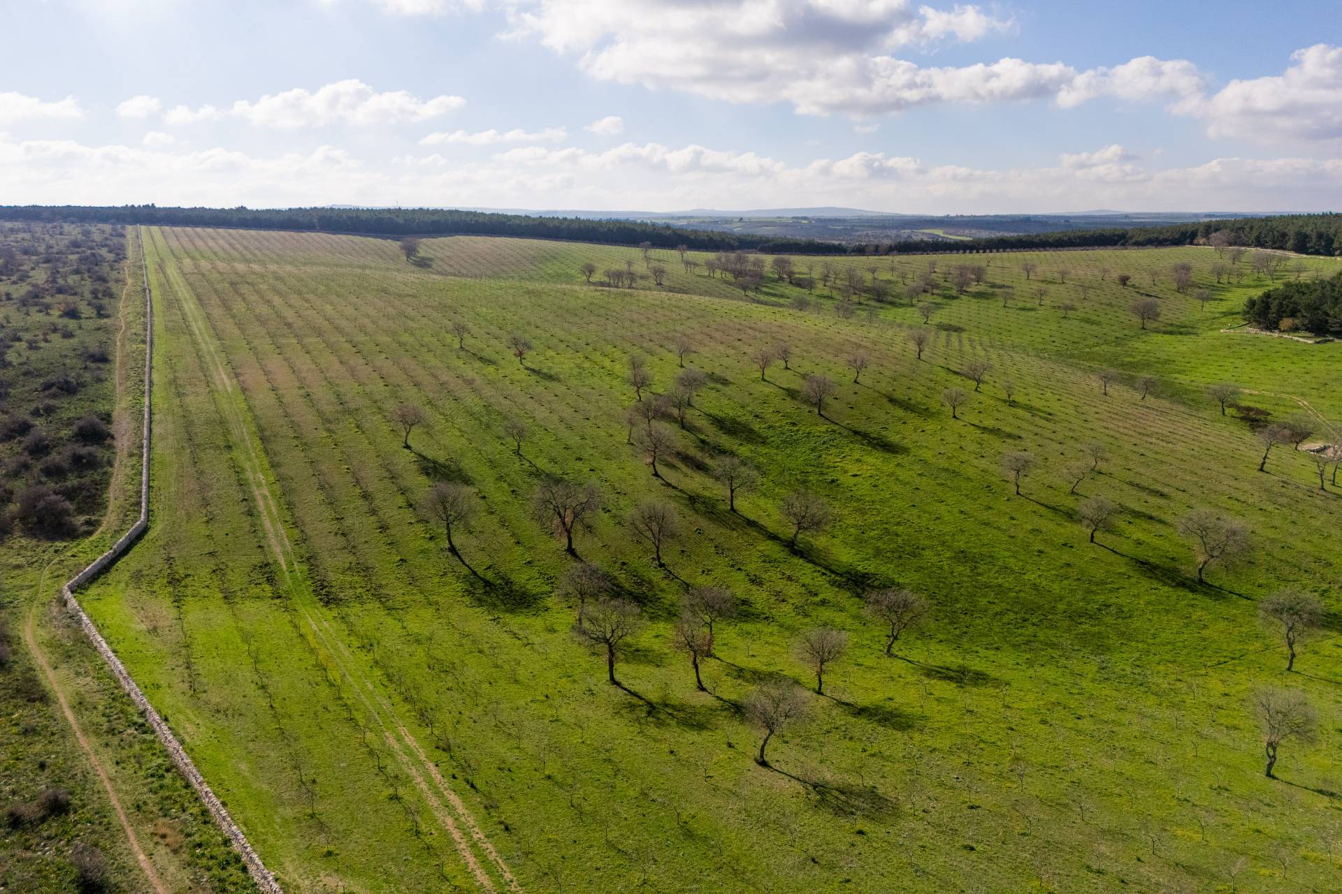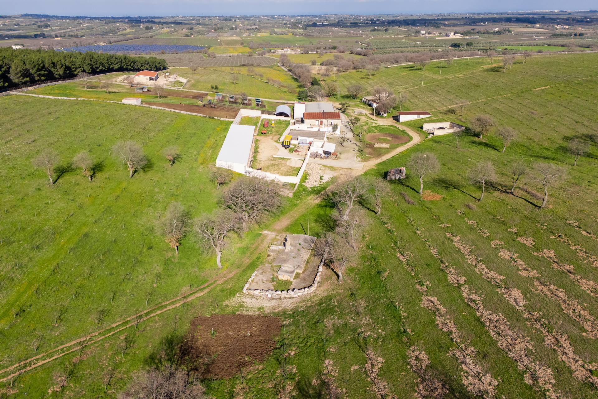 La masseria circondata da un terreno di 70 ettari, in parte coltivato a mandorleto biologico ad alta resa, uliveto secolare e una splendida zona boschiva attrezzata, ideale per attivit allaperto e itinerari naturalistici.